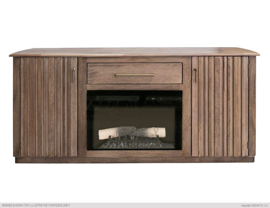 Featured-2 | Introducing The Mezquite Collection: This exquisite collection is meticulously handcrafted from sustainable mango wood. Its light distressed finish gracefully accentuates the natural richness of the wood grain, while its captivating and eclectic design elevates it to a true statement piece that can effortlessly enhance the ambiance of any room in your home.Crafted of sustainable mango and melina wood.Finish is achieved through a translucent, multi-step lacquer that lets the natural wood grain come through.Mortise and tenon construction offers stability and durability.English dovetail on 100% solid wood drawer fronts. Hafele steel slides.Doors equipped with magnetic catches.Custom metal handles with non-chip finish.Electric fireplace.Infinity Flame Effect – Vivid bright life like flame for a beautiful fireplace experience.Infinity Log is molded to create a realistic log effect.Accent Colours - The unit cycles between a series of colour options to customize the users experience.Color Themes – Red, Blue, Embers /Log onlyHeating – Unit has a forced fan heating system to heat up to 1000 Sq ft.Remote control included | |