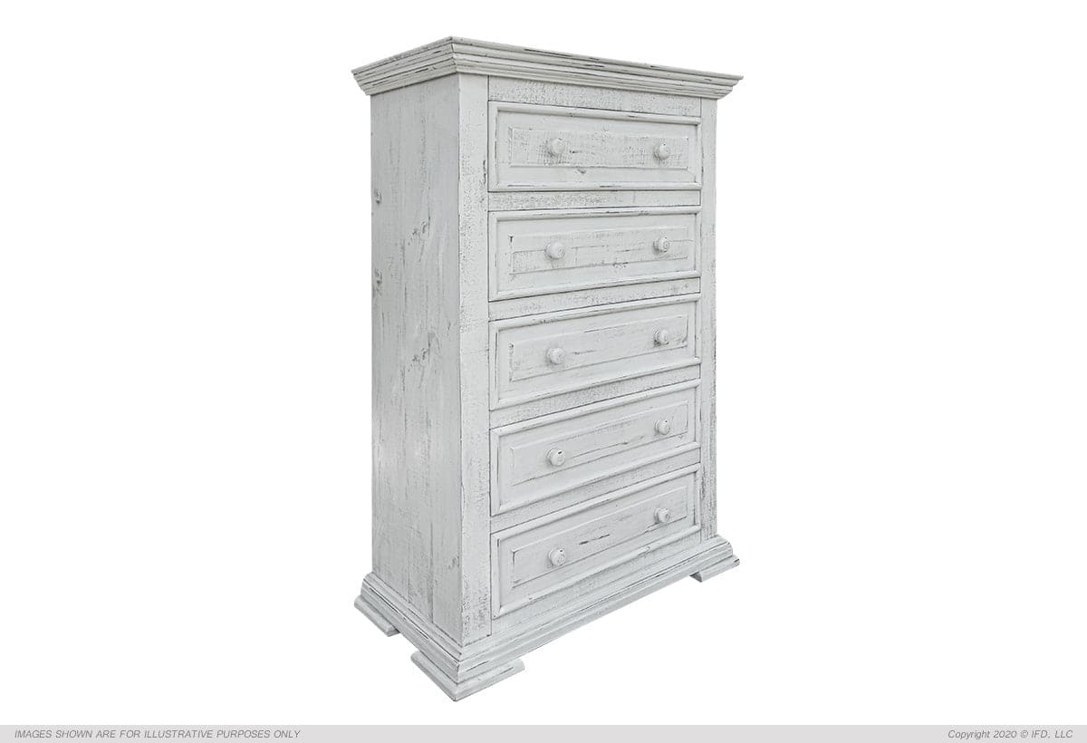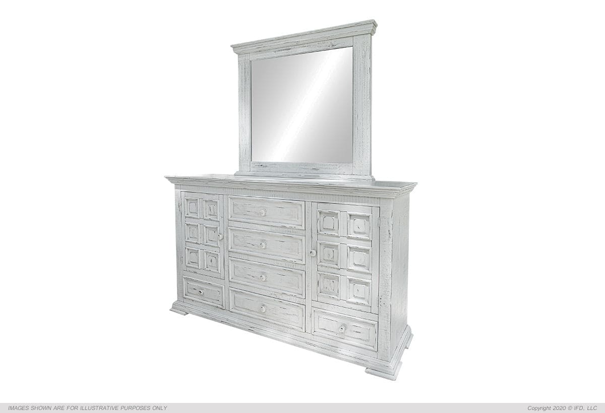 | Featured-2 | Featuring solid pineMulti-step lacquer finish in a beautiful distressed vintage white finish Mortise and tenon case construction on all piecesEnglish dovetail construction on solid wood drawer frontsMicrofiber lined top dresser drawers. Ball-bearing metal glides. Magnetic catches on doors. These are just a few quality characteristics that make our Old World Terra Bedroom functional as well as beautifulHeadboard is hand-tufted in a fabric with a linen feelRequires box springAvailable in Queen Eastern King and California King sizes | |