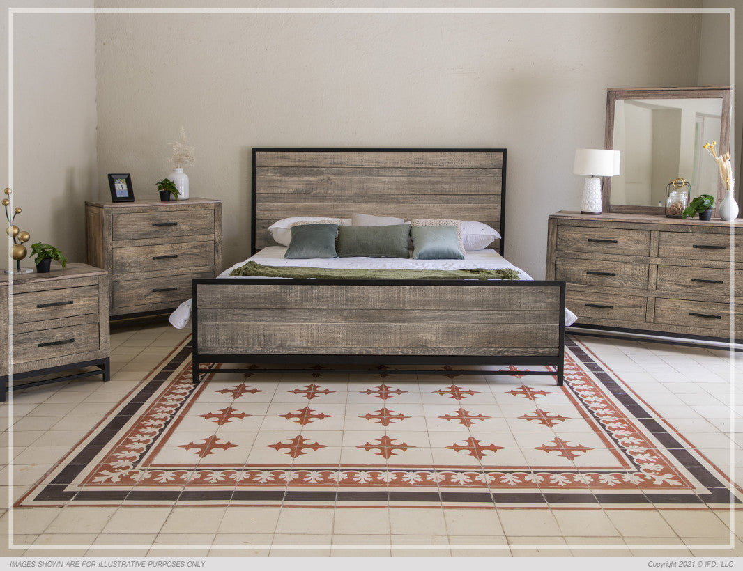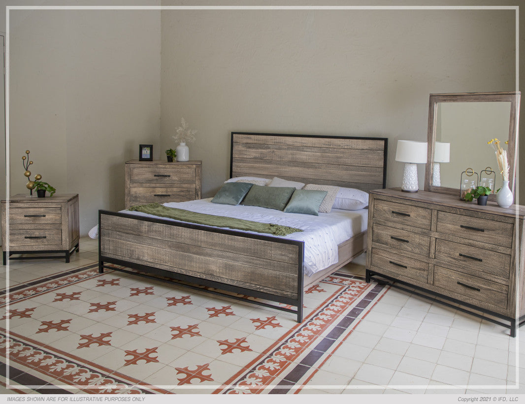 | Featured-2 | This collection features solid mango & pine wood for a beautiful natural grain contrast. 13-step lacquer finish provides protection and a smooth. A translucent light brown finish on a hand disstresed wood. Solid wood tops are floated to allow for wood’s natural movement. Mortise and tenon joinery on solid wood frames ensure stability and durability. Solid wood drawers feature English dovetail joinery on drawer fronts. Extension metal glides provide a durable and effortless glide. Microfiber-lined top drawers on dresser and nightstand. Transitional bases on case-goods constructed in metal offers a mixed media look at a value. Non-chip, custom pulls are durable and unique. Available in Queen, Eastern King and California King Sizes. Box spring is NOT required. | |