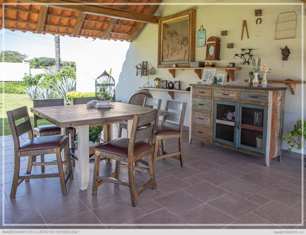 | Featured-2 | NEW durable and improved construction featuring A-grade multi-ply engineering to help prevent seasonal cracks and warping. Same look, added stability. Multi-step lacquer finish on hand brushed wood. Trim features iron with hand applied nailheads. Counter-height table features hand-wrought shelf for extra storage. IFD9671BST24 is a 100% solid wood chair. Ships fully assembled, two per box. IFD9671STL24 backless stool features swivel seat. Durable PU seat. One per box. | |
