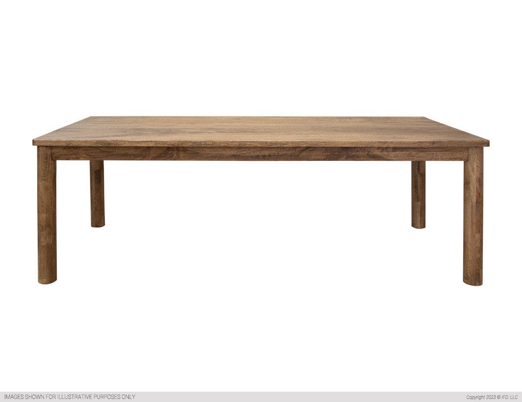 | Featured-2 | Indulge in the epitome of sustainability and elegance with our exquisite, sustainable, solid Mango wood dining set. This exceptional dining collection expresses our commitment to eco-conscious living and appreciation for fine craftsmanship. Crafted from the finest Mango wood, known for its durability and rich grain patterns, this dinner table will transform your dining space into a haven of sophistication and style. As you gather around this table, you will immediately sense the aura of prestige and refinement it exudes. Its design, reminiscent of our esteemed Olimpia dining collection, reflects the perfect harmony between minimalism and timeless elegance. The table's sleek lines and natural variations in the wood grain, expertly crafted, are a testament to the meticulous attention paid to every aspect of its creation and its uniqueness.Build from sustainable Mango Wood.Multi-step lacquer coating on top protects the natural tone of the wood.Mortise and tenon construction ensure stability and durability on all pieces.Finger joints on each slab for additional strength and stability.IFD7381CHR: 100% solid wood chair with polyester seats. Ships fully assembled, packed two per box. | |