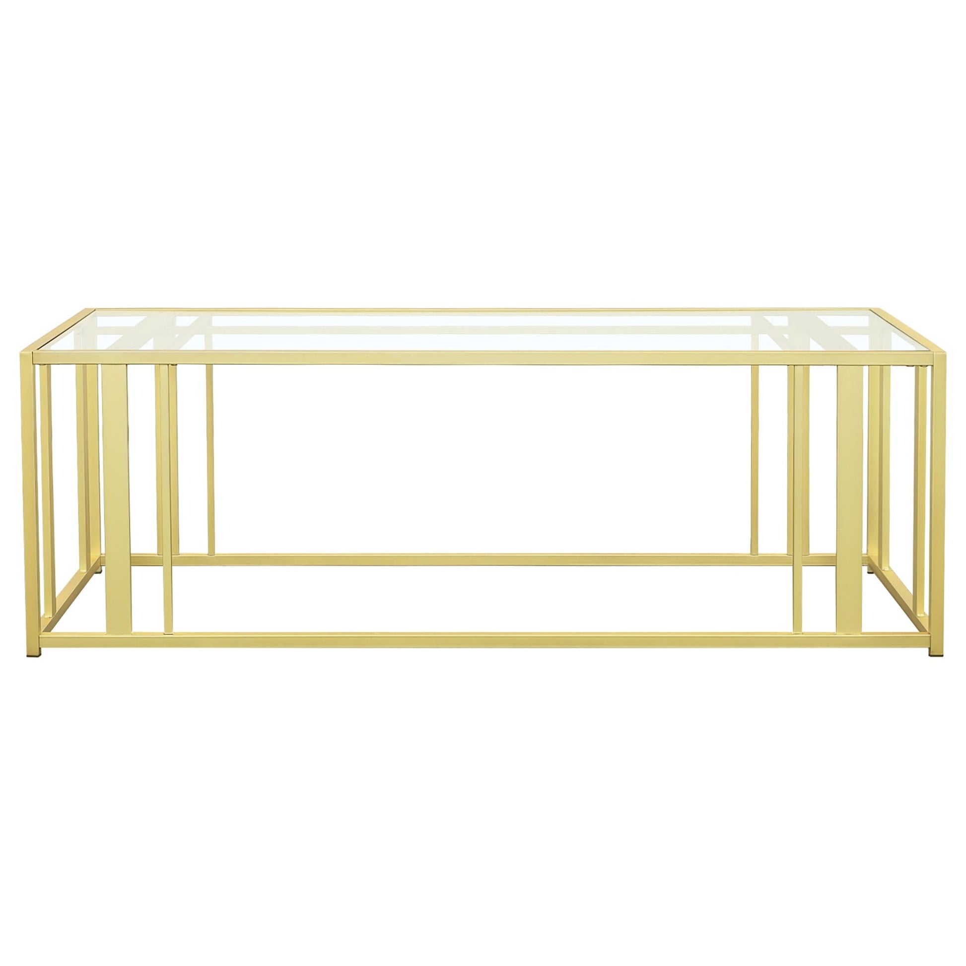 This coffee table set includes a rectangular coffee table and a matching end table, both featuring tempered glass tops and geometric bases crafted from heavy-gauge metal. The open-frame design exudes modern elegance while offering durability and functionality. Scratch-resistant materials ensure lasting quality, making the set ideal for organizing essentials or displaying decor. Its cohesive design provides a sleek, contemporary look for any living room.