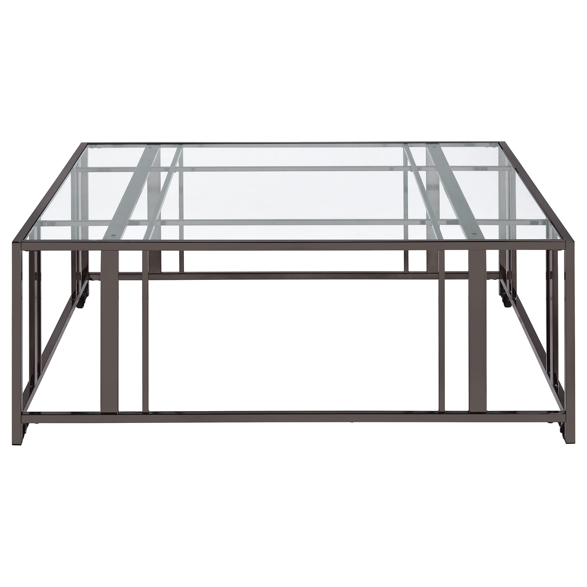 Adri Square Glass Top Coffee Table with Casters Black Nickel