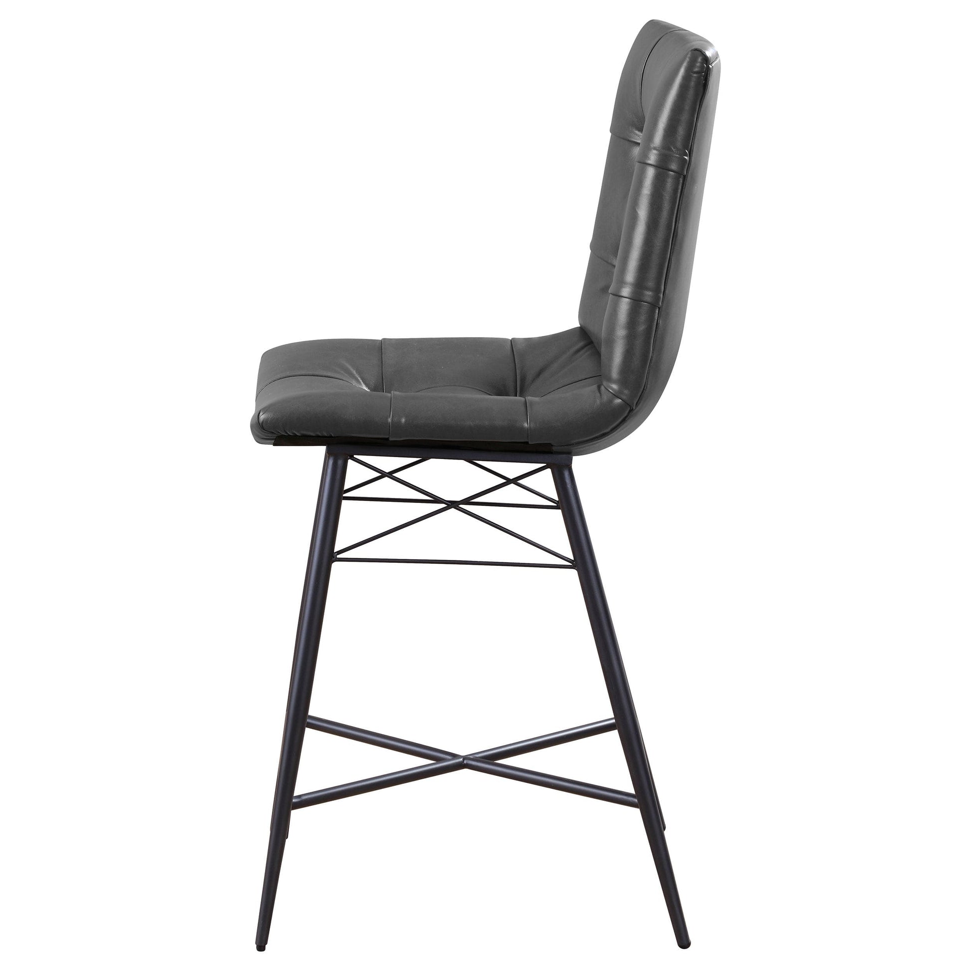 Cool and cozy, this counter height stool is the ultimate dining room upgrade. The padded seat is wrapped in smooth leatherette for an inviting look and feel. Button tufting adds a subtle, decorative touch. A sleek, metal base gives it a modern look while providing plenty of support. Crafted for comfort and lasting durability, this contemporary stool is a smart and stylish choice for the modern home.