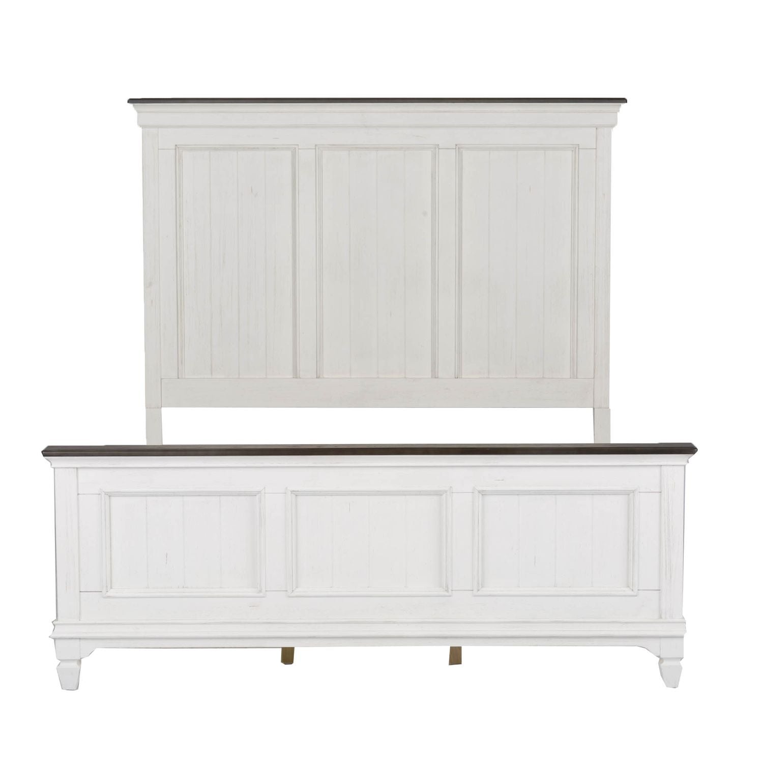 Bring beauty indoors with the Allyson Park queen panel bed, dresser, mirror, and nightstand. Crafted of pine solids and veneers with cathedral white oak tops, this kit features a wire brushed white finish with planked charcoal tops, bead molding, full extension drawers with felt lined top drawers, and is accented with antique pewter knob and drop bail hardware. The panel bed features a planked headboard and footboard in a two-tone finish. The dresser has eight drawers of varying sizes and pairs well with the crown mirror with its bead molding and beveled edge. Place the three drawer nightstand next to your bed and utilize the convenience of the built-in charging station, complete with two electrical outlets and two USB ports. Allyson Park offers cottage styles you love in a wire brushed two tone finish that will work from the beach to the mountains to an industrial loft.
