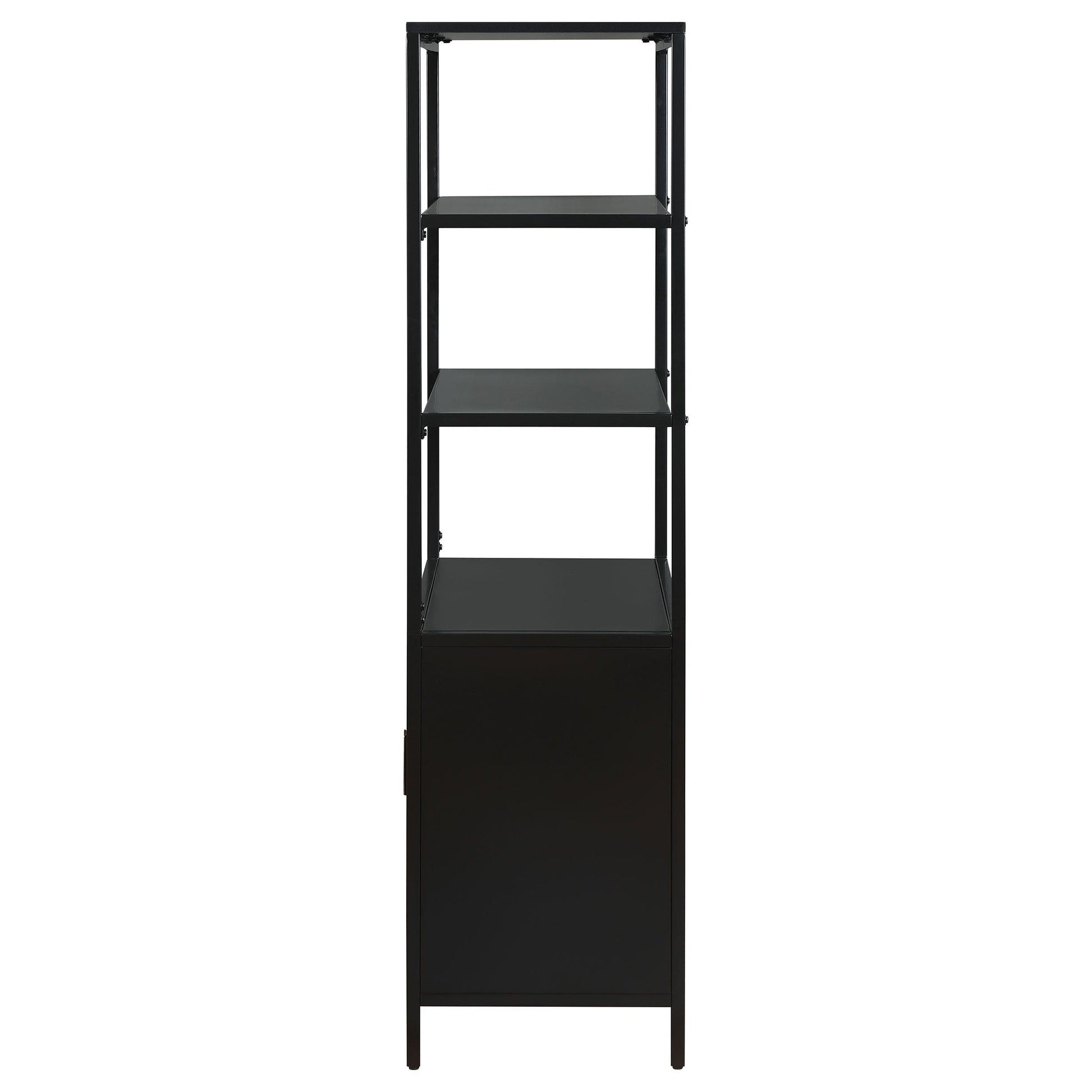 Elevate your storage solutions with this stylish two-door tall accent cabinet, expertly crafted from durable metal for long-lasting support. The sleek powder-coated finish adds a modern touch while providing excellent resistance to scratches and wear. The polyethylene (PE) rattan door fronts bring a hint of coastal charm, adding natural texture to your decor. With three tiers of open shelving, this cabinet offers ample space for displaying decor, books, or essentials, while the enclosed cabinet with a fixed shelf provides additional storage for items you want neatly tucked away. This versatile piece seamlessly combines function with style.