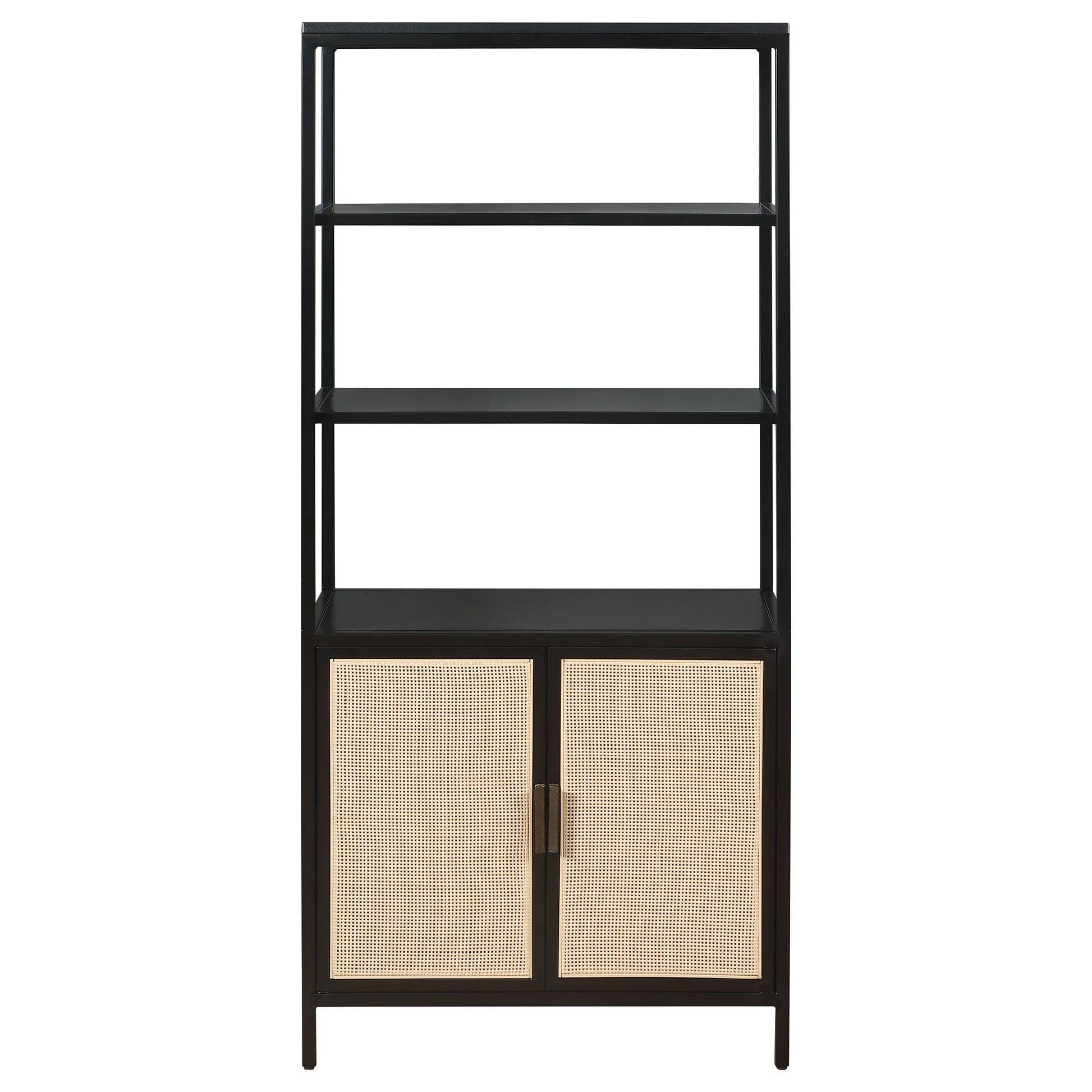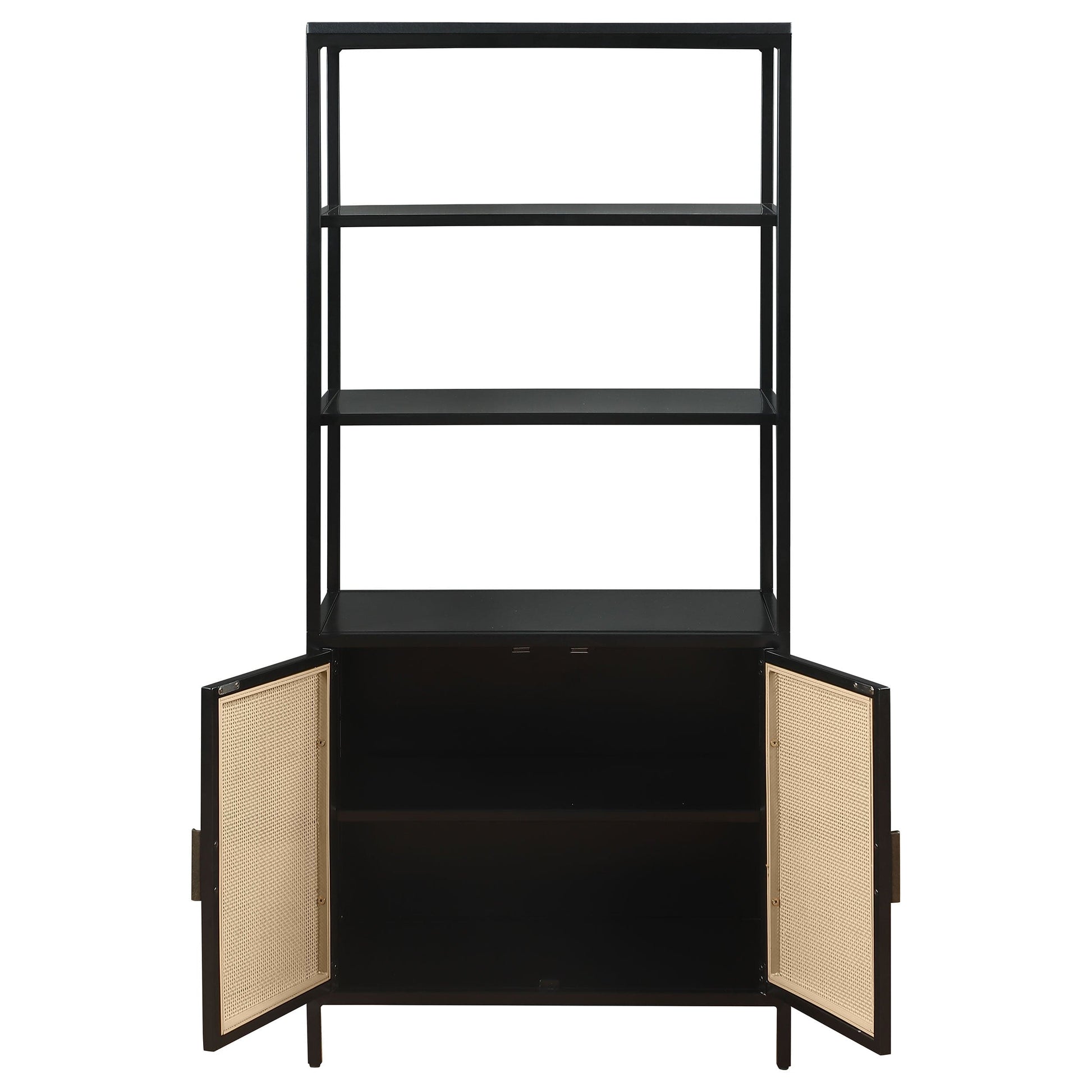 Amherst 3-shelf Radio Weave Cane Metal Accent Cabinet Black