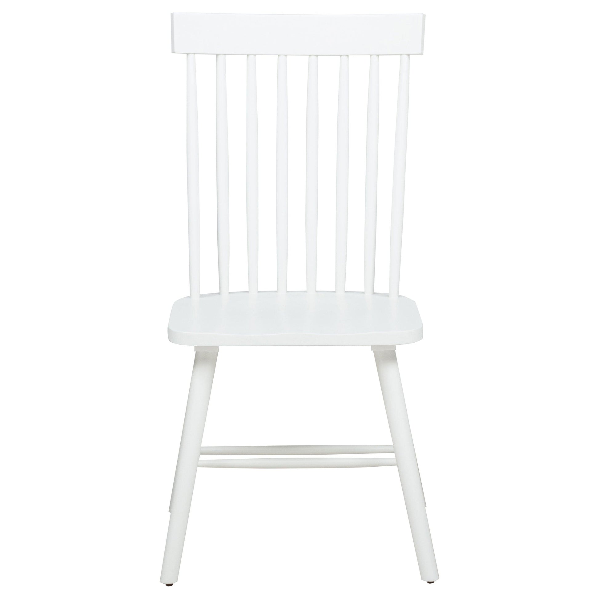 • White spindle back chairs offer tall support and contoured seats for long-lasting comfort