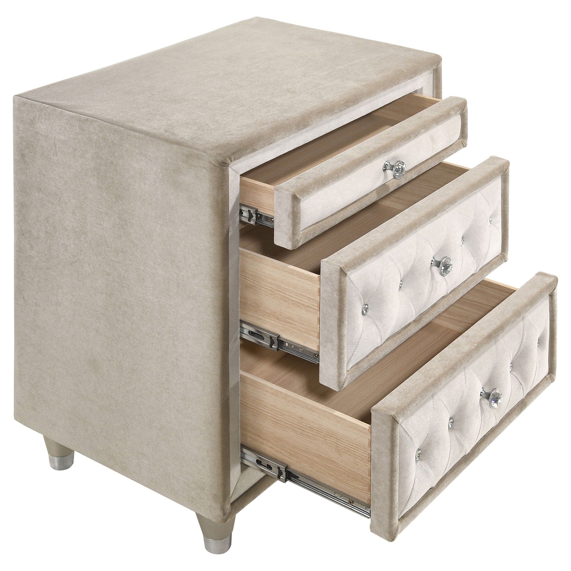 Antonella Upholstered 3-drawer Nightstand Ivory and Camel