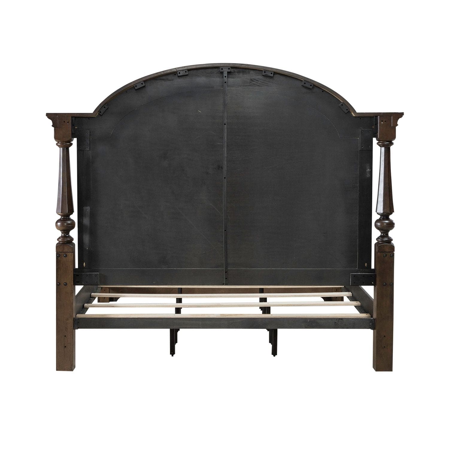 In a world of fleeting trends, the Arden Road king poster bed stands as a beacon of enduring elegance. Crafted with excellence using Poplar solids and Rustic Alder veneers, this bed features a Satin Cherry finish. The heavy arched crown of the headboard flows into faceted turned posts for a classic look and compliments the scooped center shaping of the footboard. The center panel on the headboard features high-low Rustic Alder veneers that adds dimension, while the footboard showcases column pilasters that flow into block feet. The rails offer bolt on support and the center support slat system ensures stability. When you invite the Arden Road king poster bed into your space, you’re not just selecting furniture, you’re curating a legacy that will grace your family for years to come. With the Arden Road collection, each piece is an investment. A piece of history waiting to be passed down through the generations. A living testament to the art of design, comfort, and storytelling.