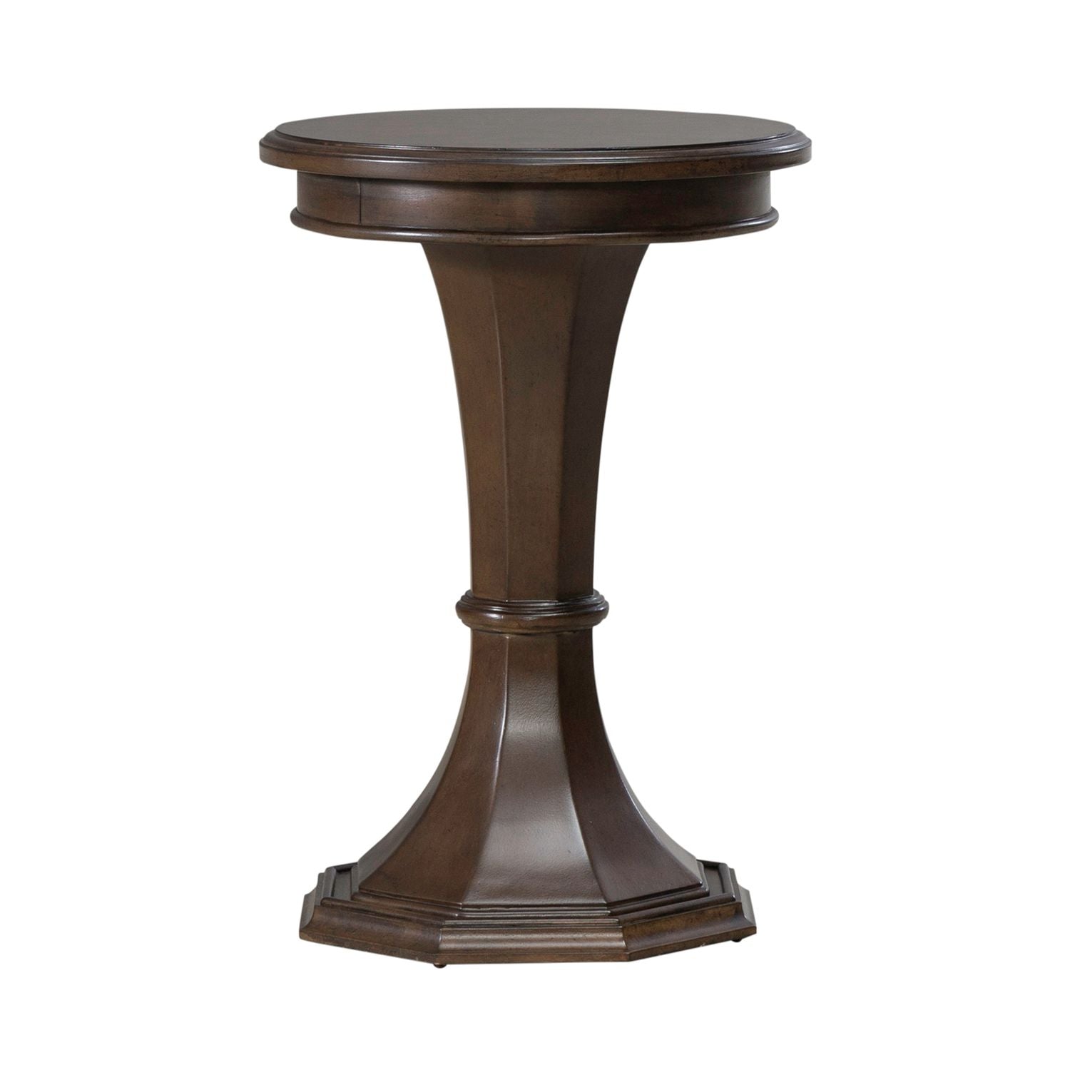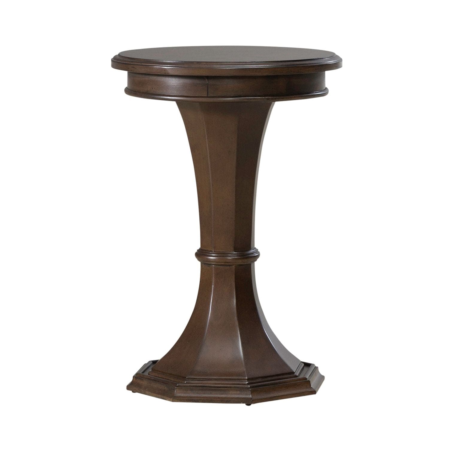 Give your home a personal touch that reflects your passions and personality with the Arden Road round chairside table. Meticulously crafted using Poplar solids and Rustic Alder veneers, this table features a Satin Cherry finish. The fancy face veneer top serves as a visual feast, showcasing precise craftsmanship and adding depth to the table’s surface. Each detail of the veneer is thoughtfully arranged to create a stunning visual pattern, making this table not just a functional piece, but a work of art. The shaped faceted turned pedestal is the focal point of this chairside table, adding a touch of vintage charm with its intricate design. Adorned with bead molding, the pedestal flows seamlessly to the octagon-shaped base, creating a sense of continuity and elegance. This attention to detail in the shaping and molding adds a layer of sophistication, making the Arden Road round chairside table a standout piece in any room. Functional and versatile, the Arden Road round chairside table is designed to complement your living space seamlessly. Whether placed beside your favorite reading chair or used as an accent table in a cozy nook, it effortlessly combines form and function.