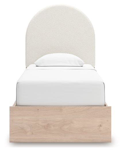Looking for a twin storage bed that's both playful and practical for your little one? This piece is just the ticket. Its charming organic shaping and light upholstery create a whimsical and inviting look that whispers “sweet dreams.” Spacious drawers underneath provide plenty of storage, so there’s no need for a messy room.
