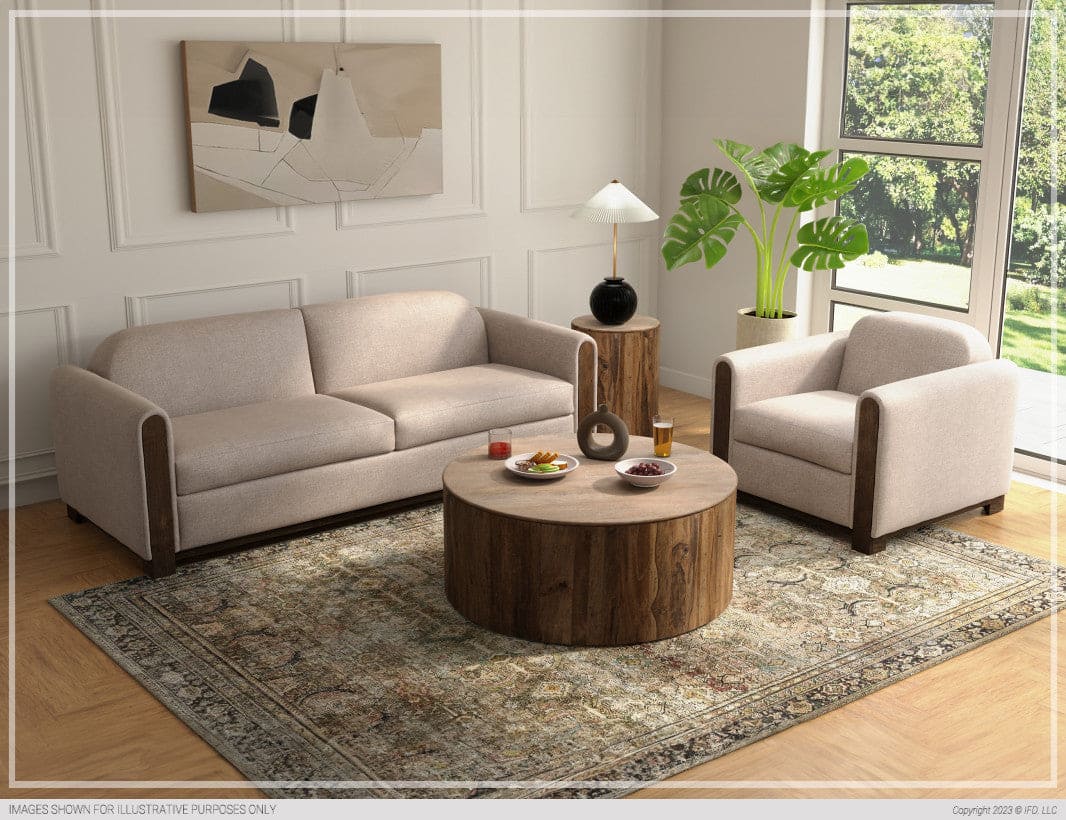 Featured-2 | The Tamesis collection presents an elegant, minimalist design, meticulously fashioned from sustainably sourced mango wood and delicately finished to evoke a sense of timeless sophistication. Our skilled artisans take great care in expertly upholstering each piece in premium fabrics, carefully selected to complement the natural beauty of the wood and achieve a seamlessly harmonious aesthetic.Constructed with plywood 15 mm thickness 5-layer ply, provides strength and durability to the frames.Features no-sag sinuous springs with tie wire for uniform seating. All sofas and love seats are double-sprung on the edges. (No fall-off to the edges).Dual-density foam on seats. 1.8 Density core wrapped with resilient and 1.4 Density foam for an ultimate Comfort Seat. Dacron-wrapped Cushion cores Ultra-crowning on seats.Elastic webbing with loose pillow backs using siliconized virgin Dacron fiber utilizing sewn-in panels. (No migration).Fully padded with microfilament foam for a better finish look.Exposed solid pine wood to match case-good collections.The sofa and loveseat set comes with two stylish decorative throw pillows.The armchair includes a decorative throw pillow. | |