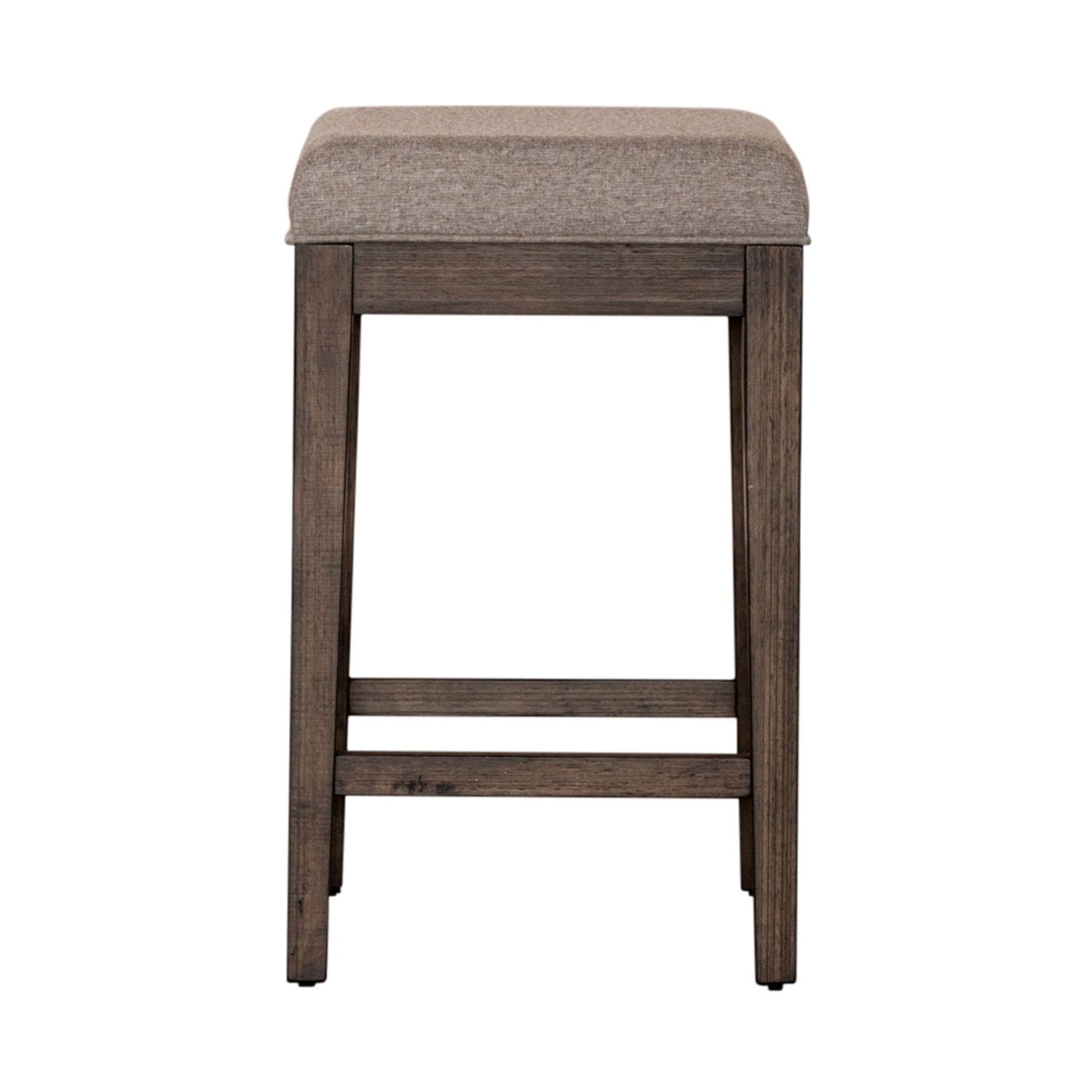 If you enjoy rustic, the Arrowcreek console stool is for you. Finished in a weathered stone and features solid pine tapered legs with an upholstered padded seat in a grey taupe fabric.