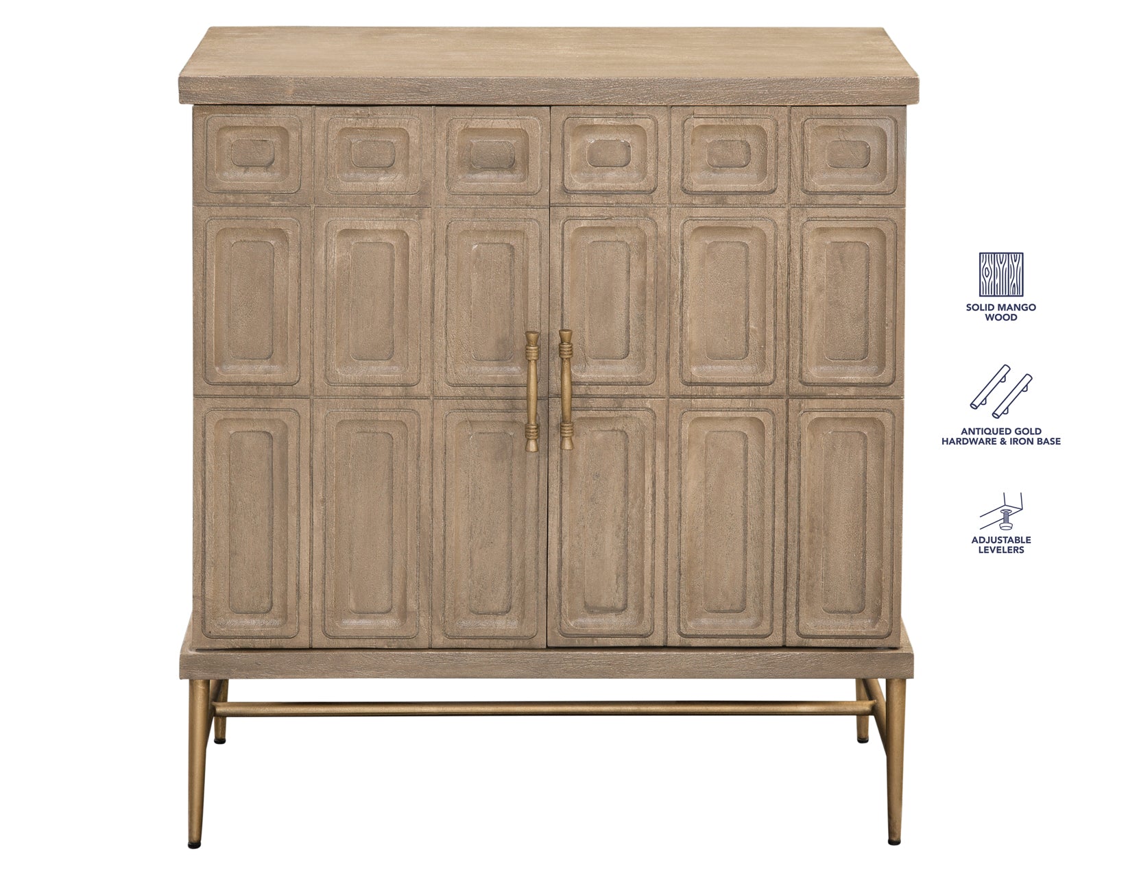 The Arun 2-Door Cabinet is a stunning accent piece that combines sophisticated style with a rustic touch and versatile storage. Its beautifully textured, geometric three-dimensional front adds a hint of mid-century modern charm, while the solid mango wood construction ensures lasting durability.