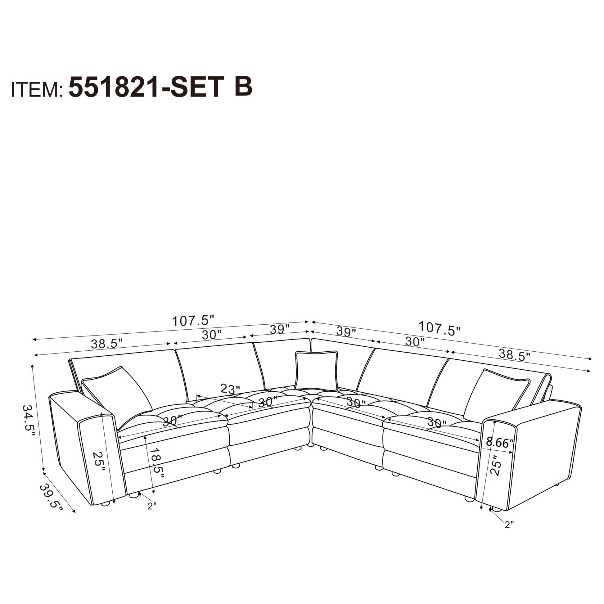 This retro-inspired modular sectional brings a blend of comfort and contemporary style to your living space. Featuring soft blue corduroy upholstery and a sophisticated grid-tufted design, it delivers both elegance and coziness. The fully encased solid and engineered wood frame ensures stability for heavy use, while sinuous spring seating and pocket coil springs provide exceptional support and durability.