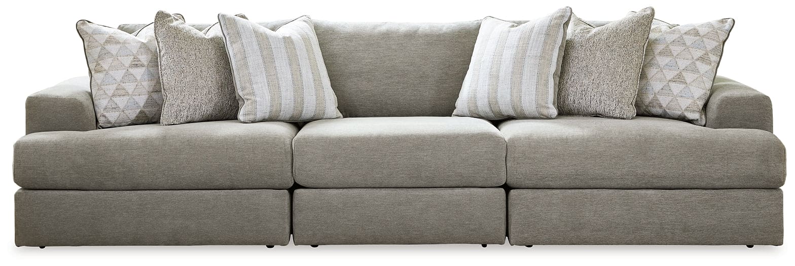 Details | Includes 3 modular pieces: left-arm facing corner chair, armless chair and right-arm facing corner chair, "Left-arm" and "right-arm" describe the position of the arm when you face the piece, Corner-blocked frame, Reversible seat and back cushions, High-resiliency foam cushions wrapped in poly fiber, Accent pillows included, Pillows with feather-fiber blend, Polyester chenille/polyester upholstery, Non-skid legs, Platform foundation system resists sagging 3x better than spring system after 20,000 testing cycles by providing more even support, Smooth platform foundation maintains tight, wrinkle-free look without dips or sags that can occur over time with sinuous spring foundations, Modular pieces can float anywhere; sides are finished (with no connectors) | |