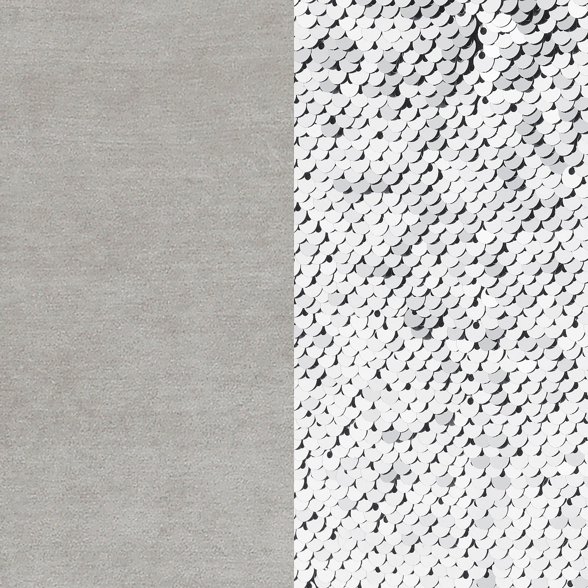 • Soft, grey velvet upholstery with deep rhinestone tufting