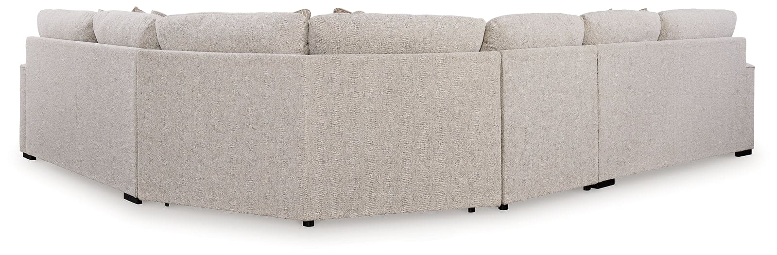 Details | Includes 4 pieces: left-arm facing loveseat, armless chair, wedge and right-arm facing loveseat, "Left-arm" and "right-arm" describe the position of the arm when you face the piece, Corner-blocked frame, Loose reversible seat and back cushions, High-density foam cushions wrapped in feather-fiber blend jacket, Accent pillows included, Pillows with feather-fiber blend, Polyester upholstery, Exposed legs with faux wood finish, Platform foundation system resists sagging 3x better than spring system after 20,000 testing cycles by providing more even support, Smooth platform foundation maintains tight, wrinkle-free look without dips or sags that can occur over time with sinuous spring foundations | |