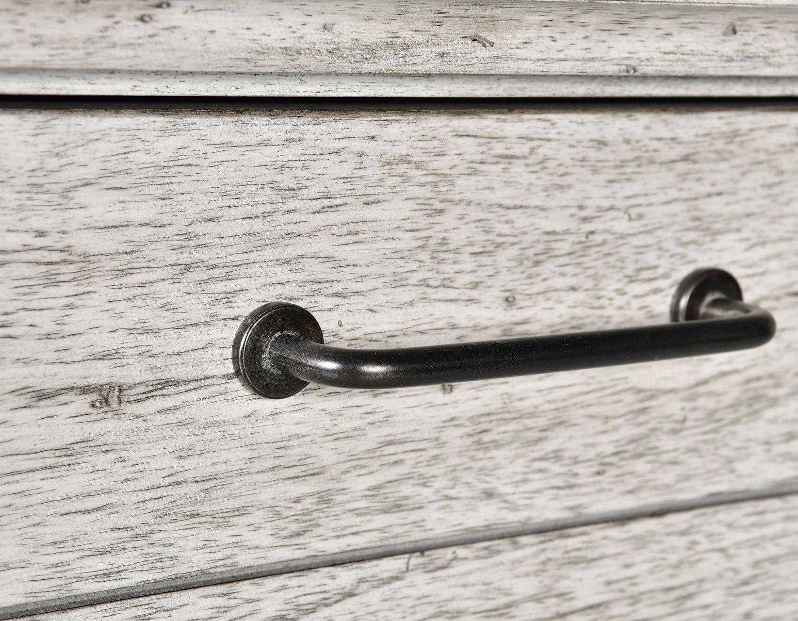 A rustic, farmhouse-inspired Chest, Bear Creek features a white-smoke finish that contrasts beautifully with honey-smoke stained tops and cap rails. The chevron patterned drawers complement the ultra-deep drawers that are supported by side drawer glides for easy operation.