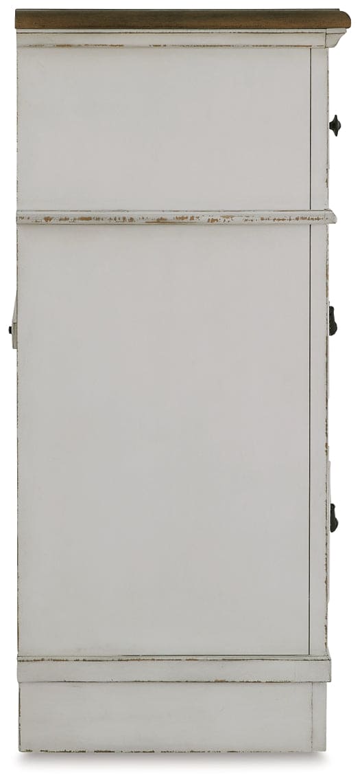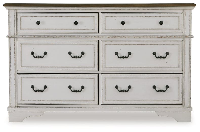 Traditional design. Casual appeal. You can have it all with this dresser. A relaxed two-tone aesthetic merges with ornate profiled drawer fronts and pilasters to give the distinctive piece an allure all its own. Expansive drawers with quality dovetail construction and dark bronze-tone hardware reflect attention to detail from the inside out.