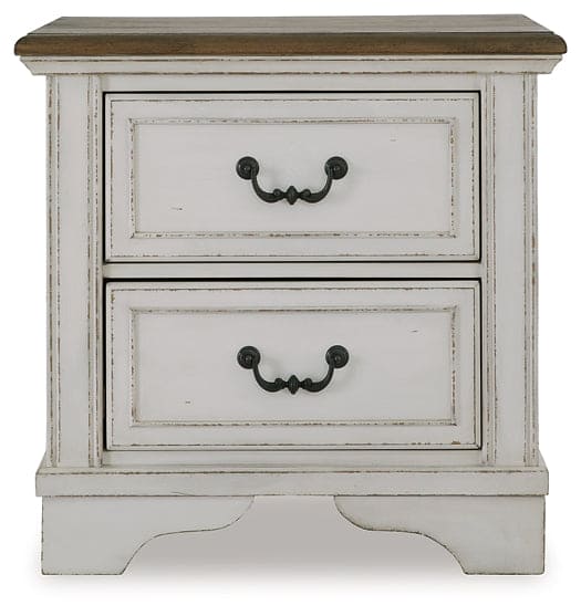 Traditional design. Casual appeal. You can have it all with this nightstand. A relaxed two-tone aesthetic merges with ornate profiled drawer fronts and pilasters to give the distinctive piece an allure all its own. Expansive drawers with quality dovetail construction and dark bronze-tone hardware reflect attention to detail from the inside out.