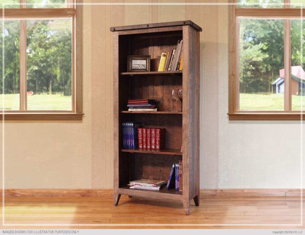 Featured-8 | 7. Base and tops trims feature solid, hand-forged iron with nailhead detailing for an authentic rustic look. Bookcase, 12 Different Positions Available for Shelves (1 Middle Fixed Shelf + 2) Dim: 33-1/4 x 14-3/4 x 70-3/4 Wt: 71 lb |