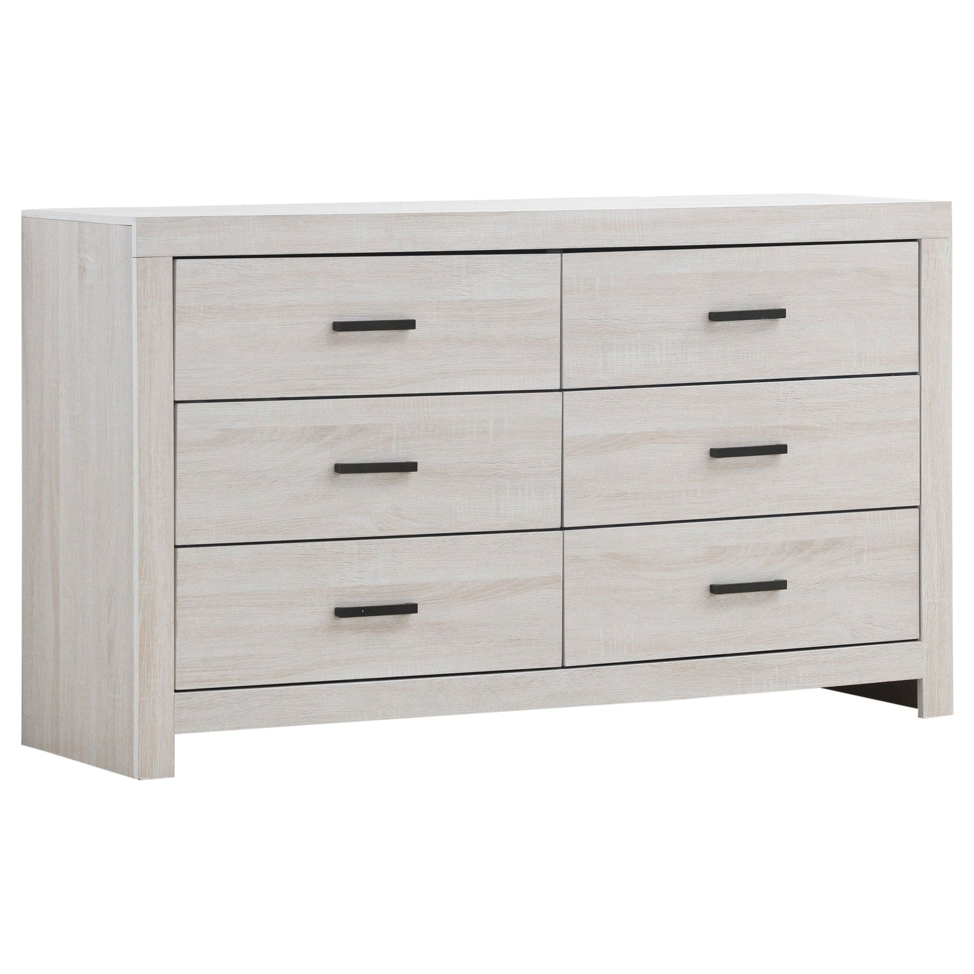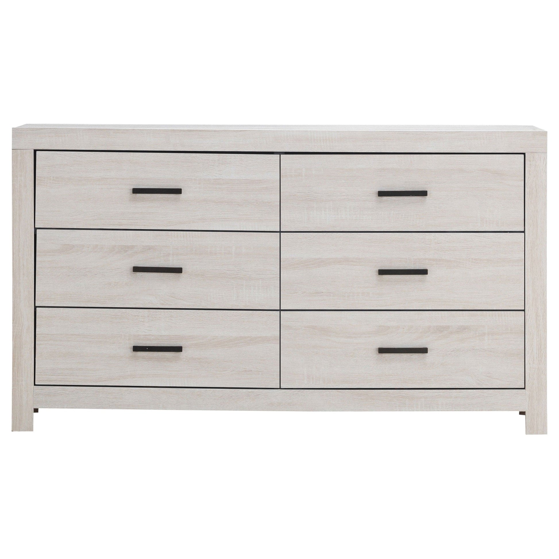 This six-drawer dresser offers a perfect balance of style and storage. Its clean-lined frame complements modern and contemporary spaces, while six spacious drawers provide ample room for clothing and accessories. Crafted from engineered wood with a durable laminate veneer, this dresser is built for everyday use. Matte dark bronze handles add a refined contrast, enhancing its sleek and functional design.