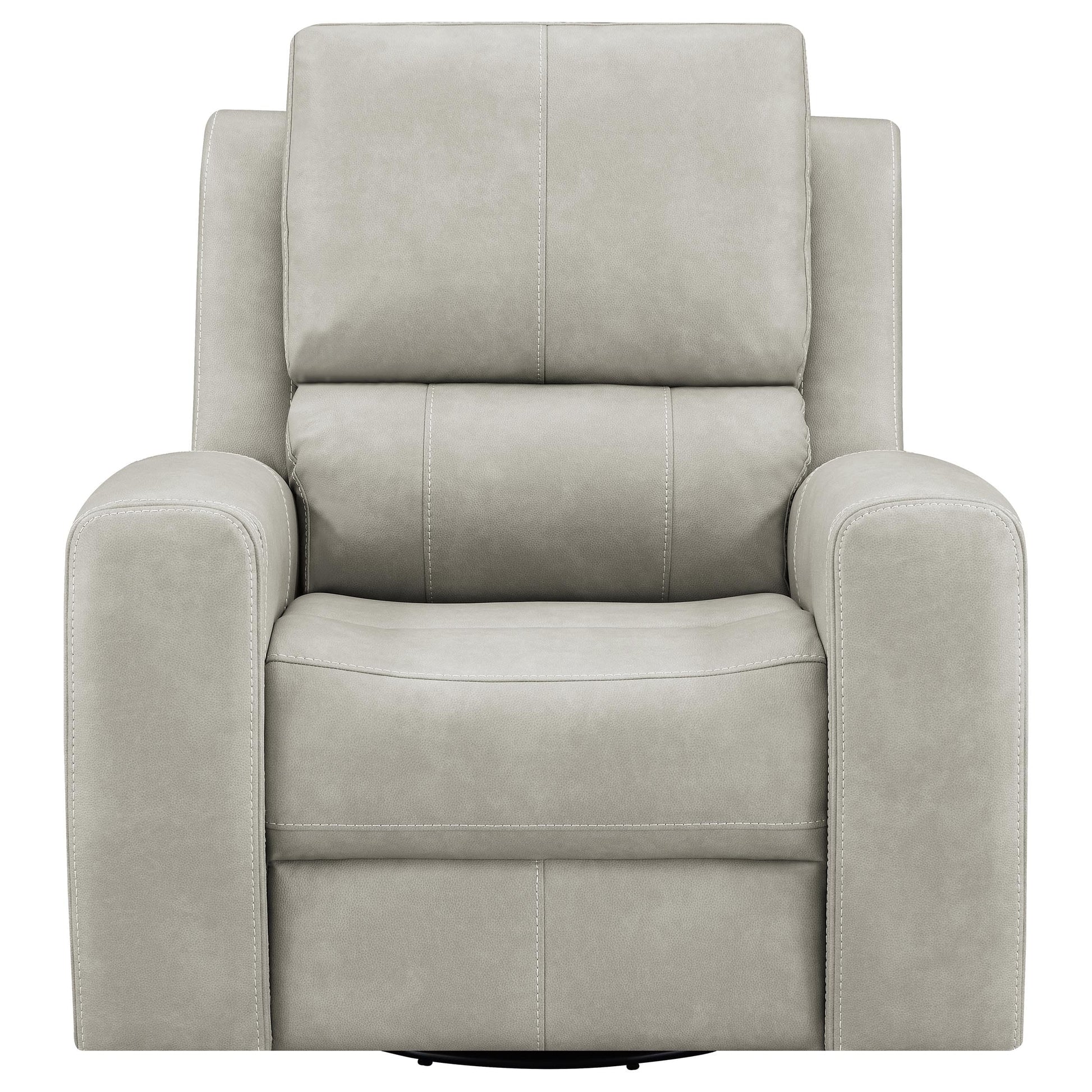 This triple power recliner chair invites you to unwind with motion, support, and quiet luxury. Wrapped in soft leatherette upholstery, it offers a supple touch that enhances every moment of rest. A gliding and swivel base flows effortlessly while plush cushions and contouring lumbar support cradle the body. Power headrest, lumbar, and zero gravity recline functions adjust at your command. Hidden cup holders and built-in USB A and USB C ports add thoughtful convenience, while an emergency power-down port offers peace of mind.