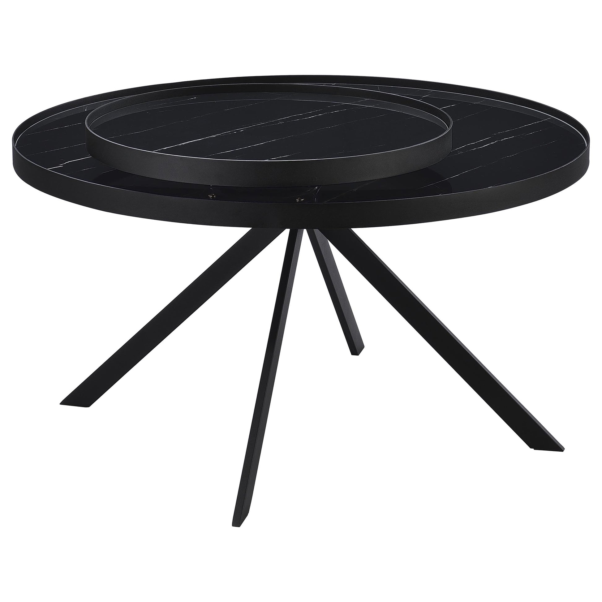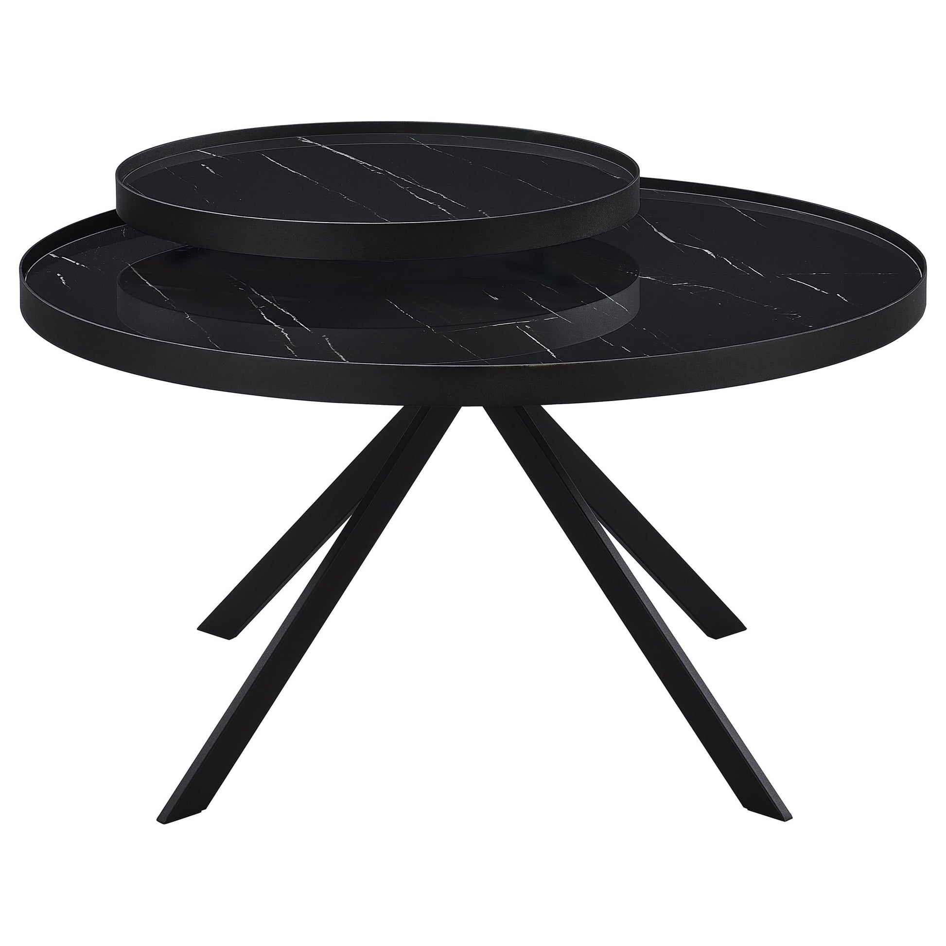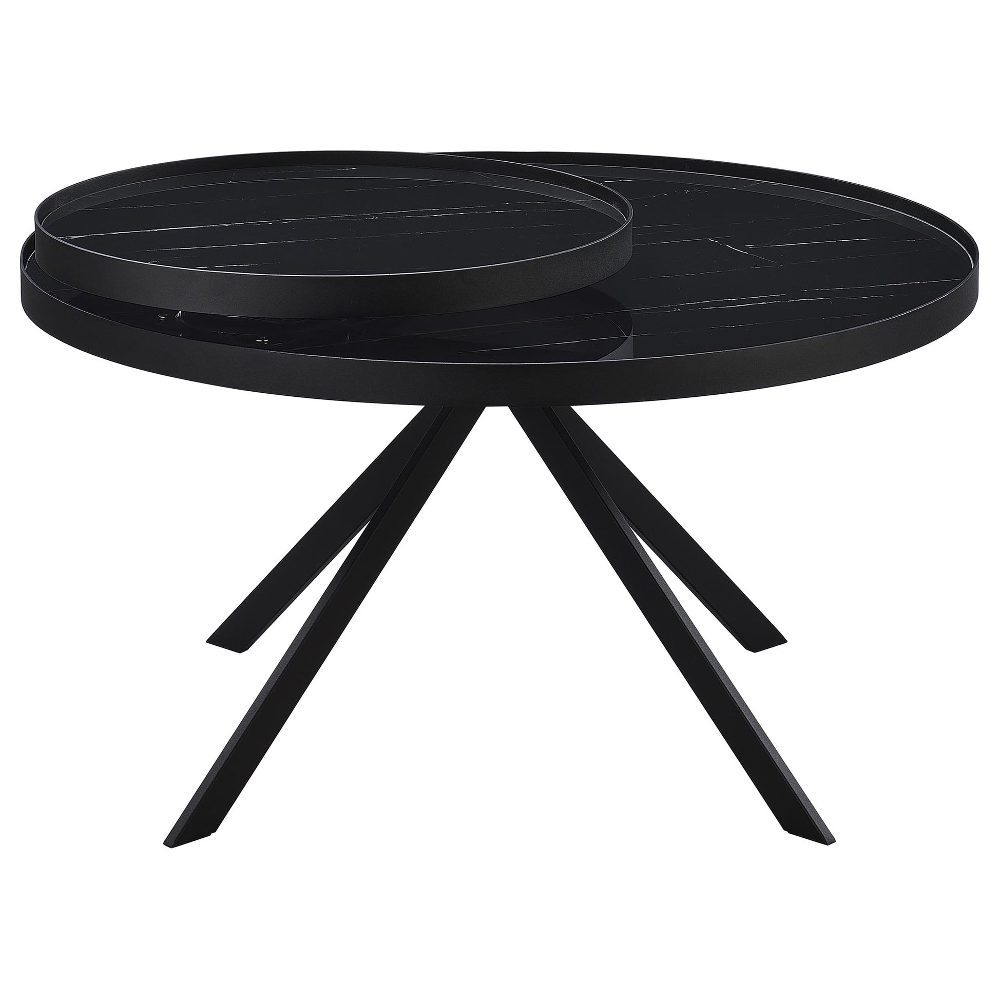 Briggs Round Marble Printed Glass Top Coffee Table Black