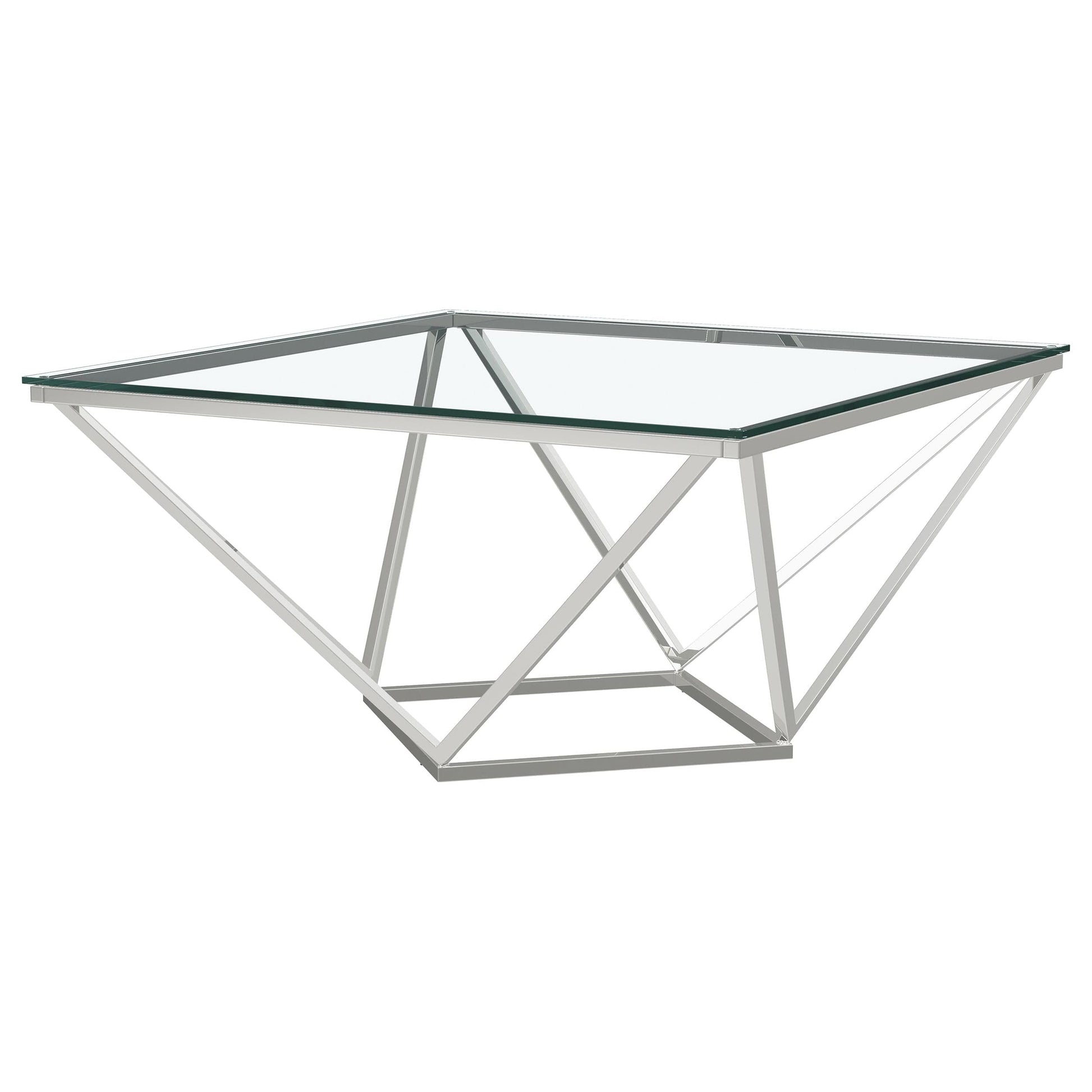 This modern coffee table set features a bold geometric design, combining polished nickel-finished steel bases with clear tempered glass tops. The tempered glass surfaces are scratch-resistant and easy to maintain, making them ideal for everyday use. The open-frame design enhances the airy, contemporary aesthetic, perfect for minimalist or industrial-inspired interiors. Crafted with durable materials and an elegant design, this set brings style and functionality to any modern living space.