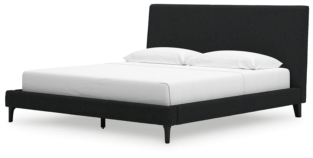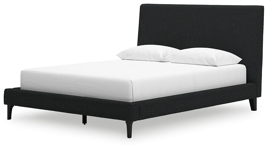 This queen upholstered bed reflects your sophisticated approach to boho style. Crafted with both form and function in mind, its black boucle fabric brings trend-right beauty to bedtime. The versatile design suits all-neutral spaces or blends with your favorite pops of color. It’s inviting, yet posh. Luxe, yet laid-back. With this bed, your free-spirited vibe meets modern design.