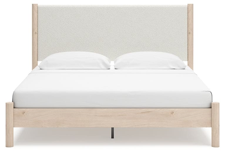 Transform your bedroom with this queen upholstered panel bed. With clean lines and textured fabric, it exudes a minimal and sophisticated boho style. Tailor your space and create the perfect environment for sweet dreams.