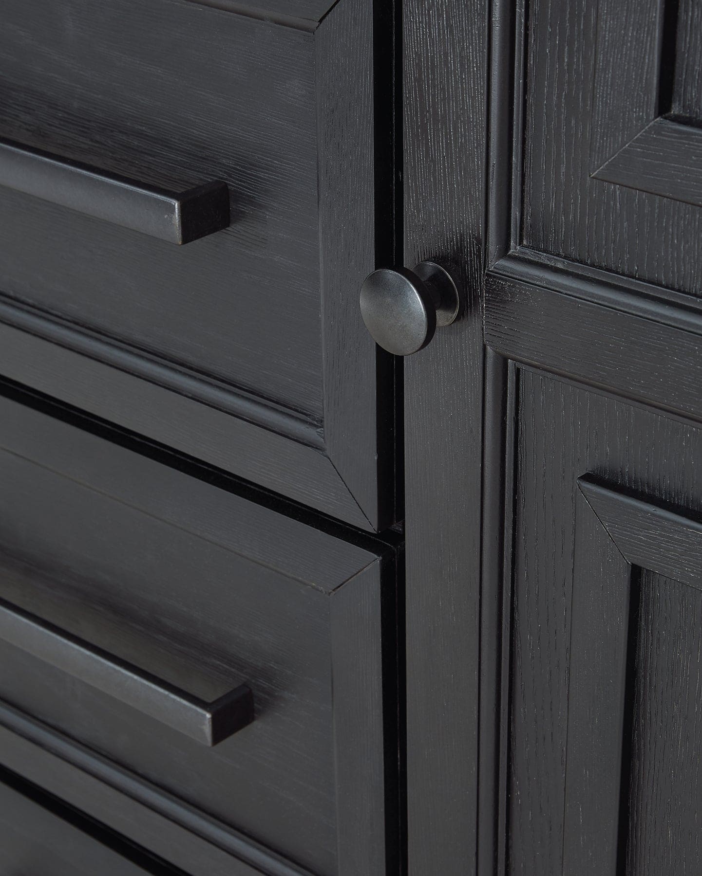 | Details | B989B5: Includes California king panel headboard, storage footboard, and rails with roll slats, Made with hardwood solids, select oak veneers and engineered wood, Two-tone finish (brushed black and dusty grayish brown wood tone), Headboard with picture frame moulding, Footboard with two deep drawers, Smooth-gliding soft-close drawers with fully finished interiors and dovetail construction, Sleek drawer pulls with black finish, Bed does not require additional foundation/box spring; accommodates most zero clearance adjustable bases with the addition of a bunkie board, Mattress available, sold separately, Assembly required, B989B1: Includes dresser and mirror, Made with hardwood solids, select oak veneers and engineered wood, Two-tone finish (brushed black and dusty grayish brown wood tone), Sleek drawer pulls with black finish, 11 soft-close, smooth-gliding drawers with fully finished interiors and dovetail construction (top drawers felt lined), 5 drawers with brushed black finish; 6 drawers with grayish brown wood tone, 3 drawers located behind each door, Mirror mounts to back of dresser, Assembly required, B989-48: Made with hardwood solids, select oak veneers and engineered wood, Two-tone finish (brushed black and dusty grayish brown wood tone), Sleek drawer pulls with black finish, 5 soft-close, smooth-gliding drawers with fully finished interiors and dovetail construction (top drawers felt lined), 3 pull-out trays (felt lined) and 2 adjustable shelves behind door, B989-92: Made with hardwood solids, select oak veneers and engineered wood, Two-tone finish (brushed black and dusty grayish brown wood tone), Sleek drawer pulls with black finish, 2 soft-close, smooth-gliding drawers with fully finished interiors and dovetail construction, 110V power supply with dual USB charging port, Power cord included; UL listed, | |