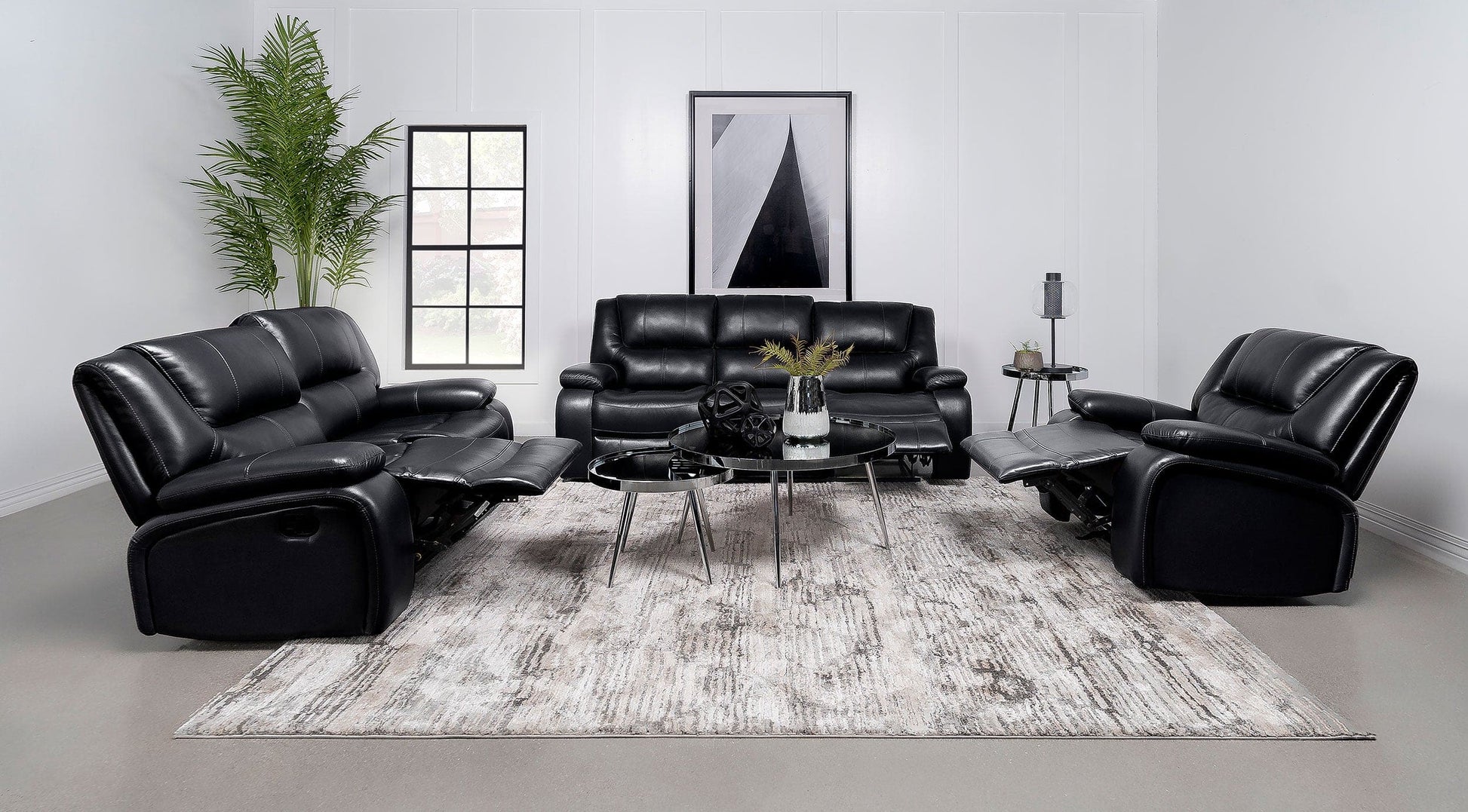 Bold black leatherette upholstery offers the look of luxurious leather with easy-care maintenance as the glider recliner is versatile and beautiful. Living rooms, family rooms, and dens become comfort zones with the plump feel and clean design of a classic glider recliner built for hours of seating comfort as well as entertaining. Manual reclining with the bonus of a gliding motion is easy and pleasant, allowing a variety of positions for sitting and lounging. Choose this elegant recliner with pillowy support, as the attached seat and back cushions feature plump foam filling with channeling to target body comfort and padded armrests over rounded sides. Entertain in style and sheer comfort with a glider recliner that’s also ideal for solo lounging and napping.