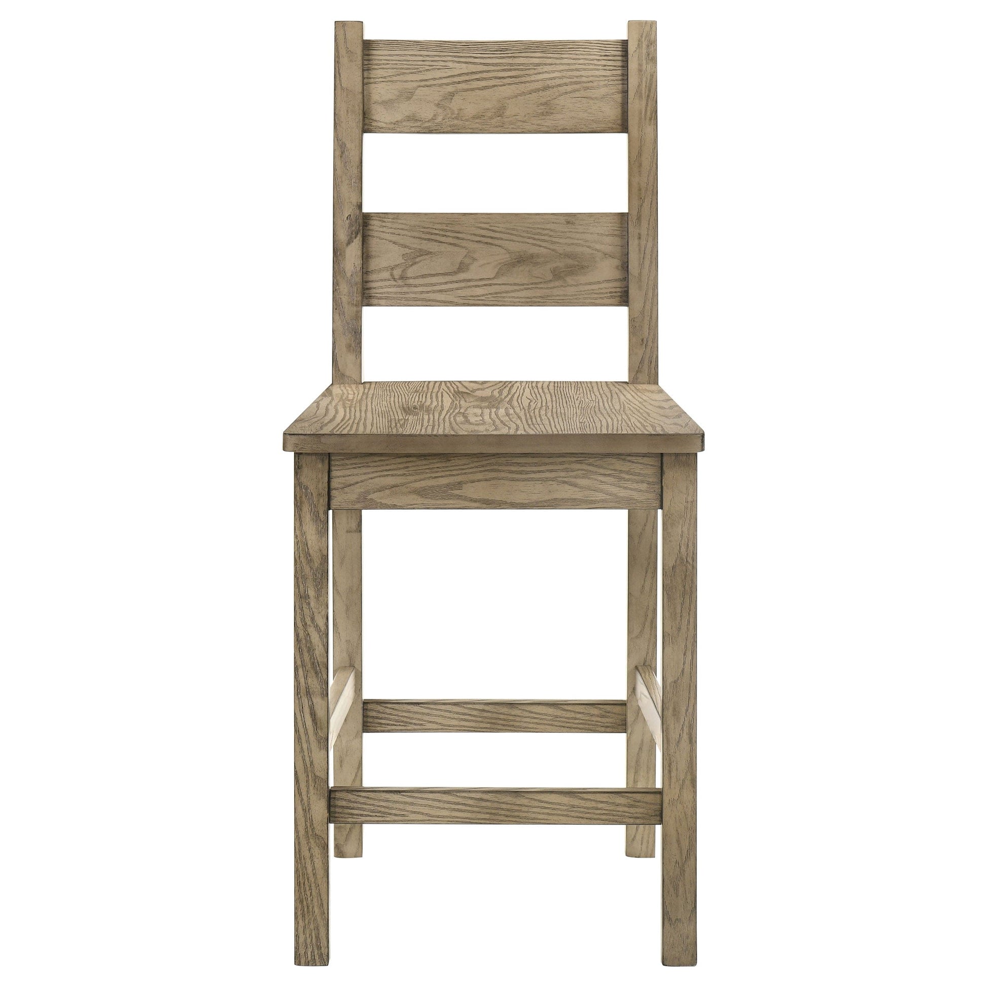 This counter height dining chair blends rustic character with practical design, perfect for casual elevated dining. Its tall ladder back offers supportive comfort, while the flat wooden seat provides a sturdy surface for everyday use. Crafted from solid rubberwood, the durable frame is coated in a vineyard oak finish that accentuates the natural wood grain. Ideal for pairing with counter height tables, it adds warmth and timeless appeal to any gathering space.
