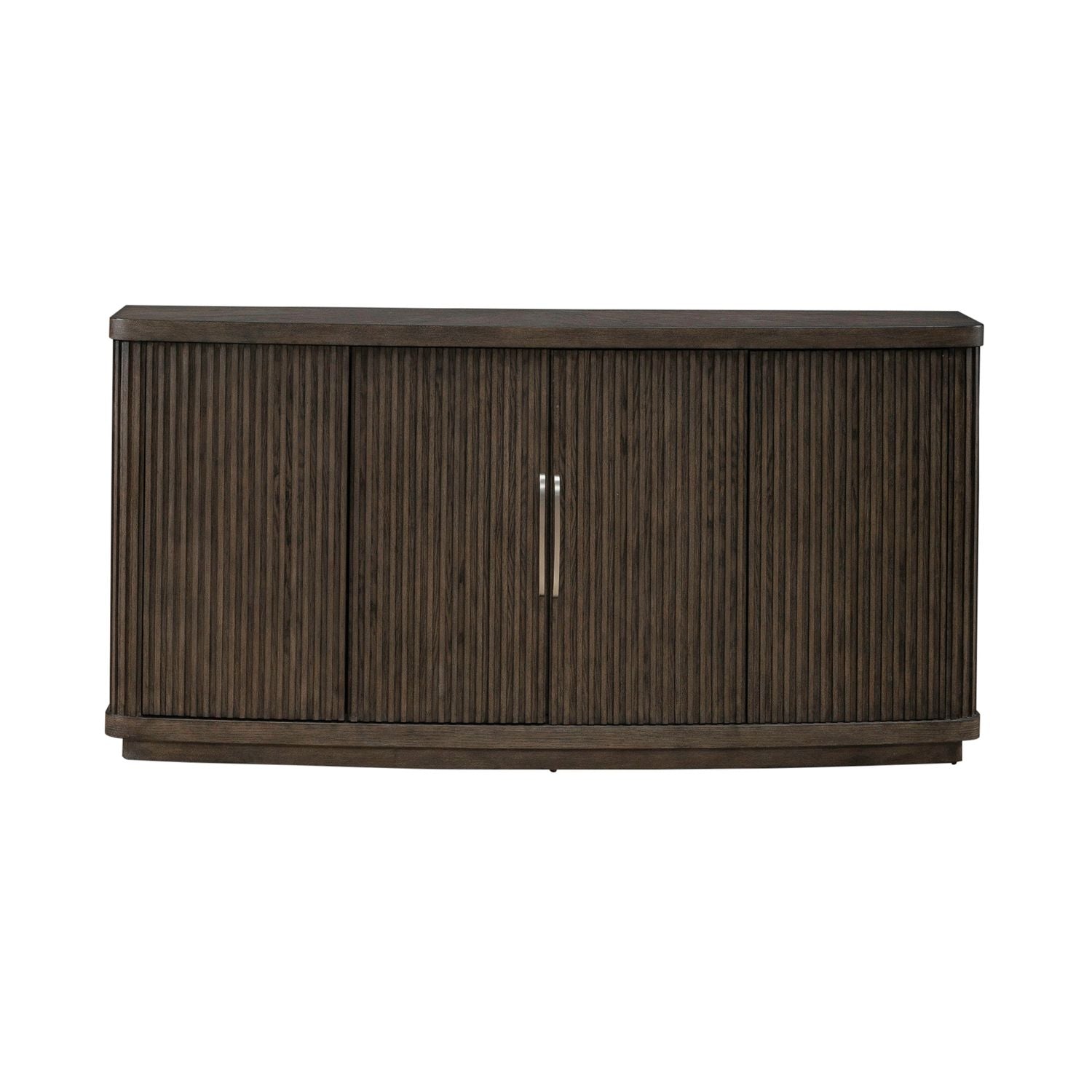 The Cascade Falls buffet is a stunning fusion of contemporary design and functional innovation that redefines sophistication in dining storage. Crafted with excellence using Rubberwood solids and Split Heart White Oak veneers, this buffet features a Satin Espresso finish. The buffet’s standout feature is its four reeded pattern doors, creating a tactile and visual experience that adds depth to the design. Supported by European soft close hinges, the doors open effortlessly, revealing a thoughtfully organized interior designed for both storage and style. The outer doors feature a modern push latch system, ensuring a seamless and minimalist aesthetic. Opening the outer doors unveils two adjustable wood shelves behind each, providing ample space to accommodate a variety of dining essentials. These adjustable shelves not only contribute to the buffet’s versatility, but also add a layer of practicality to its design. The two middle doors introduce a touch of glamour with Custom Satin Nickel bar pull hardware. These elegant accents create a visual focal point and make the buffet a statement piece in any dining room. Behind the two center doors lies a carefully designed storage space. One adjustable wood shelf allows for customizable organization, while a hidden drawer, featuring soft closing drawer guides, adds and element of discretion. The hidden drawer includes a removable felt lined silverware tray, ensuring your precious cutlery is stored with the outmost care. Anchoring the buffet is an inset bow shaped plinth base, providing a sense of elegance and continuity to the overall design. The base not only adds a distinctive touch, but also ensures stability, making this buffet a durable and reliable addition to your dining space. The Cascade Falls buffet is a testament to the art of thoughtful design and meticulous craftsmanship. Elevate your dining experience with this exquisite piece that seamlessly integrates form and function, making it a center piece that enriches both your décor and daily life.