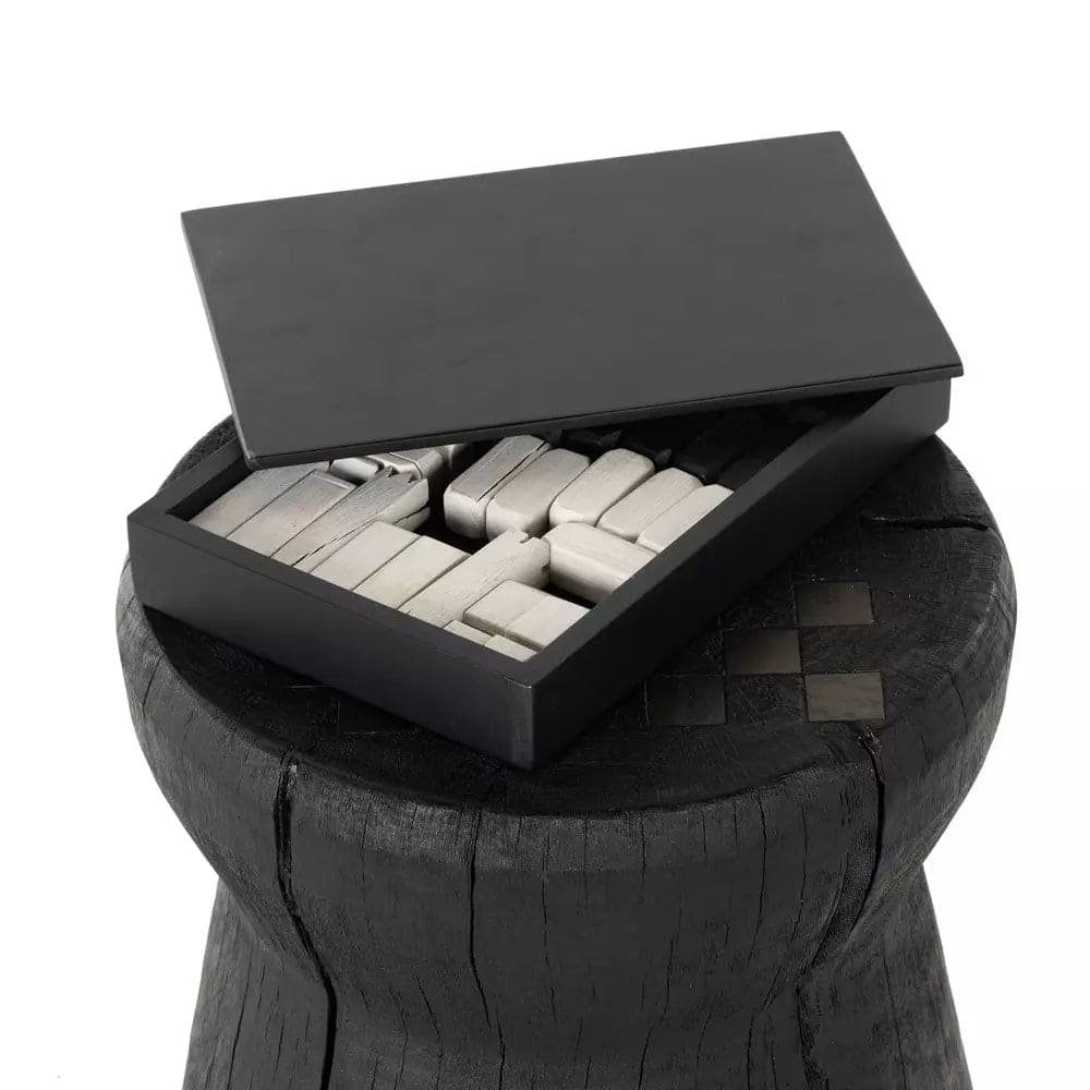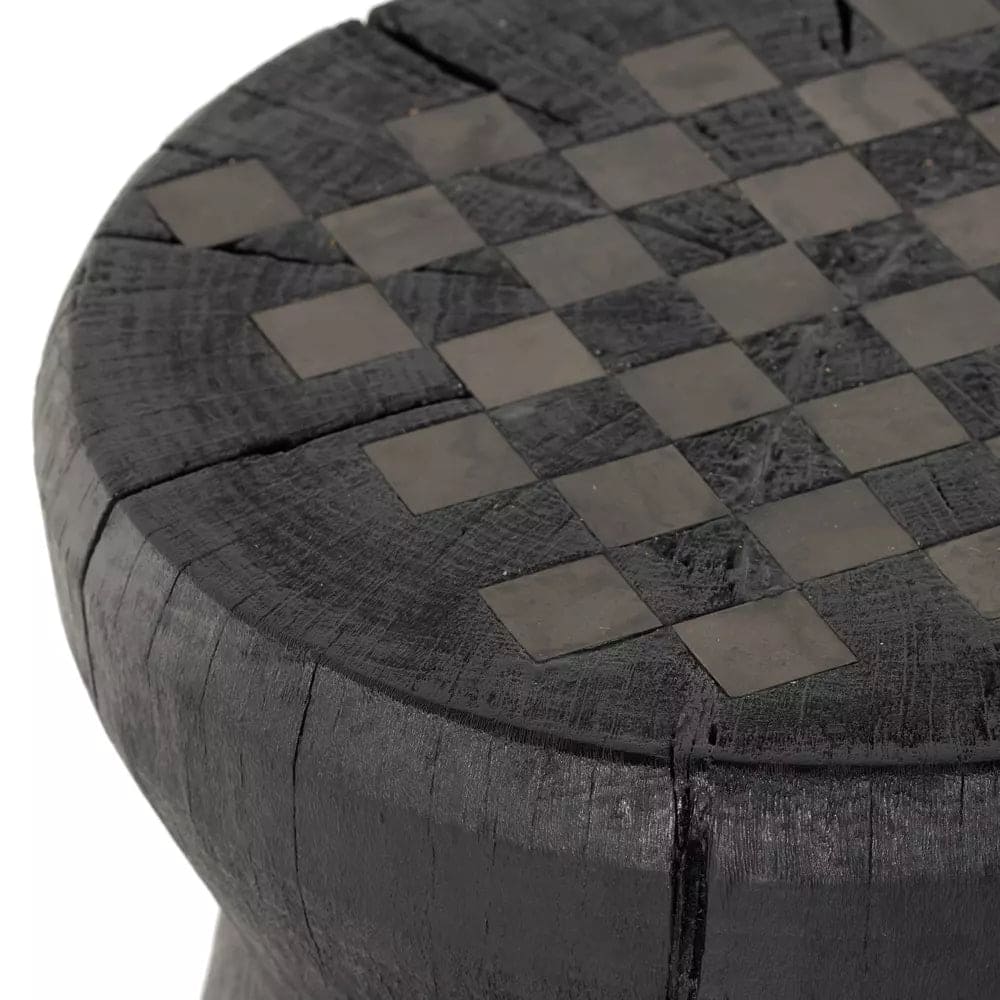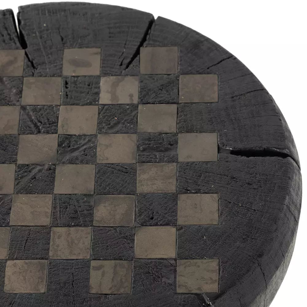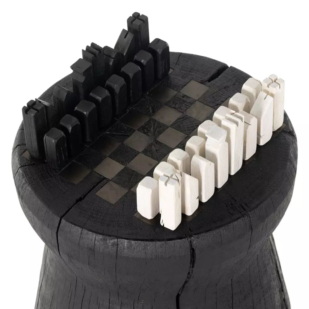 Make your move. Chess table and pieces carved from solid wood remnants at a family-run factory in Mexico to maximize every part of a naturally fallen tree and minimize waste.