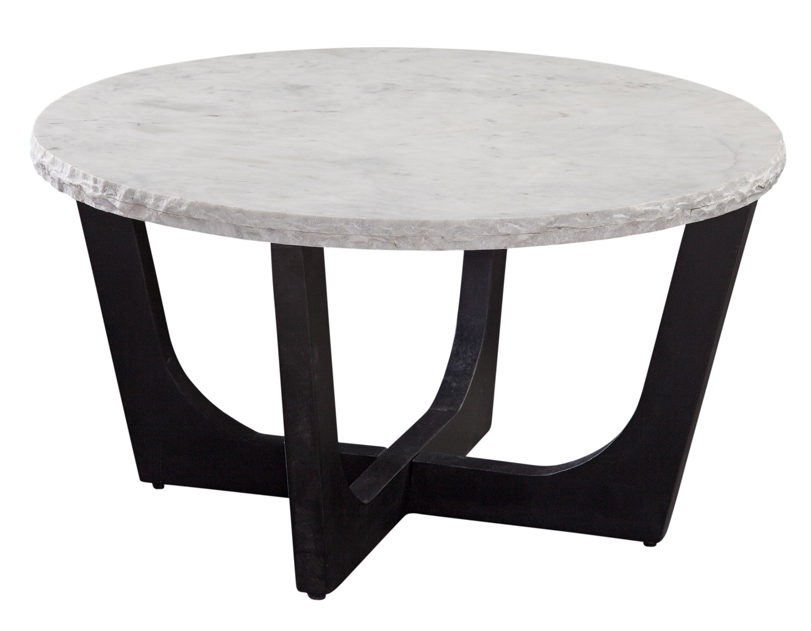 The Chrissy Table Set blends flowing round lines with the timeless beauty of marble, creating an elegant focal point for any living room. Its transitional design features a tapered solid wood double trestle base in an ebony finish, offering bold contrast to the organic live edge marble top. This unique combination pairs a polished surface with a rugged, natural edge, adding a refined yet rustic touch.