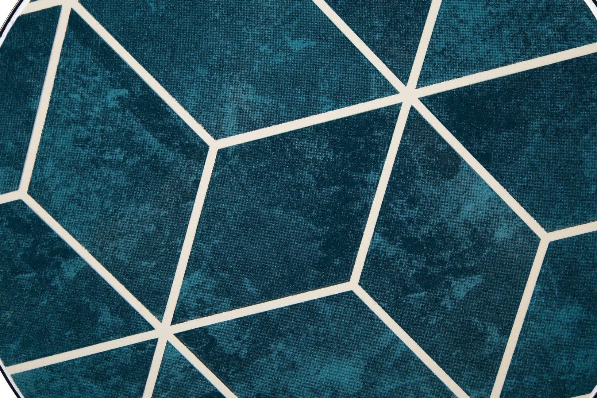 This accent table set enamors all with its striking style. The mesmerizing diamond pattern top graces your space with a splash of geometric design and a dashing two-tone teal glaze. Dazzle guests by making it a resting place for cocktails and hors d'oeuvres at parties—or keep this piece all to yourself as a bedside table for books and other baubles.