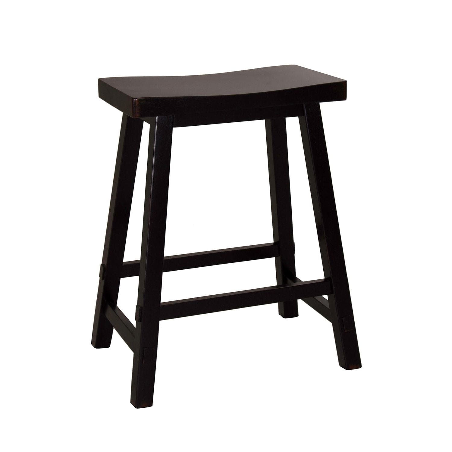 Sit in style and comfort with the Creations II sawhorse barstool. Crafted of rubberwood solids, this piece features a black finish, contoured seat for added comfort, and nylon chair glides to protect your flooring. This piece is available in multiple finishes including tobacco, navy, gray, slate, white, and sizes to fit your unique needs.