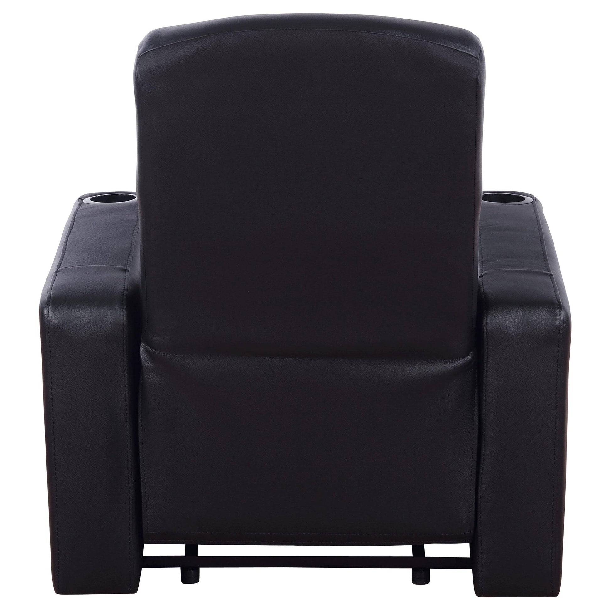 • Modern recliner upholstered in black top grain leather everywhere the body touches