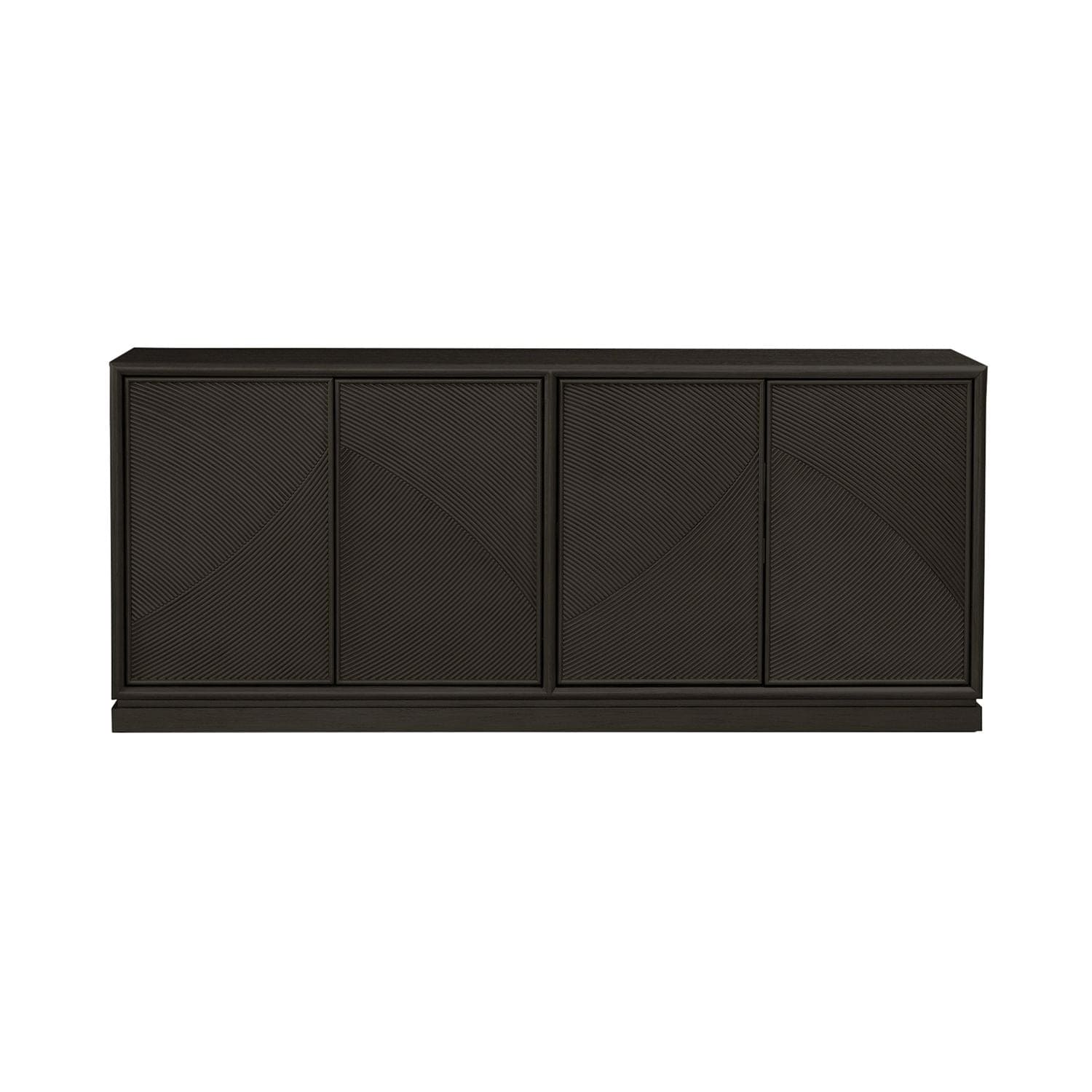 With its eye catching design and thoughtful features, the Dahlia accent console is sure to become the focal point of any room. Meticulously crafted with Rubberwood solids and Split Heart Cathedral White Oak veneers, this piece features a Satin Espresso finish. At first glance, the console captivates with its unique aesthetic, featuring four reeded doors arranged in a mesmerizing wave pattern. This distinctive design adds a sense of movement and dynamism to the piece, creating a visual masterpiece that commands attention. The doors, supported by European soft-close hinges and featuring push latches, open and close with ease, providing access to the storage space within. Behind each set of doors lies one fixed wood shelf, offering ample room for storing and organizing a variety of items. Additionally, wire management provisions ensure that cables and cords remain neatly tucked away, maintaining a clean and clutter-free appearance. The exterior of the console is just as thoughtfully designed, with softly shaped picture frame molding adding a touch of elegance and sophistication. The floating-style base gives the console a sense of lightness and airiness, creating a striking contrast with the solid construction of the piece. Whether placed in a living room, dining room, or entryway, the Dahlia accent console is sure to make a statement wherever it goes. With its blend of stunning design and practical functionality, it promises to enhance any space with its timeless beauty and undeniable charm.