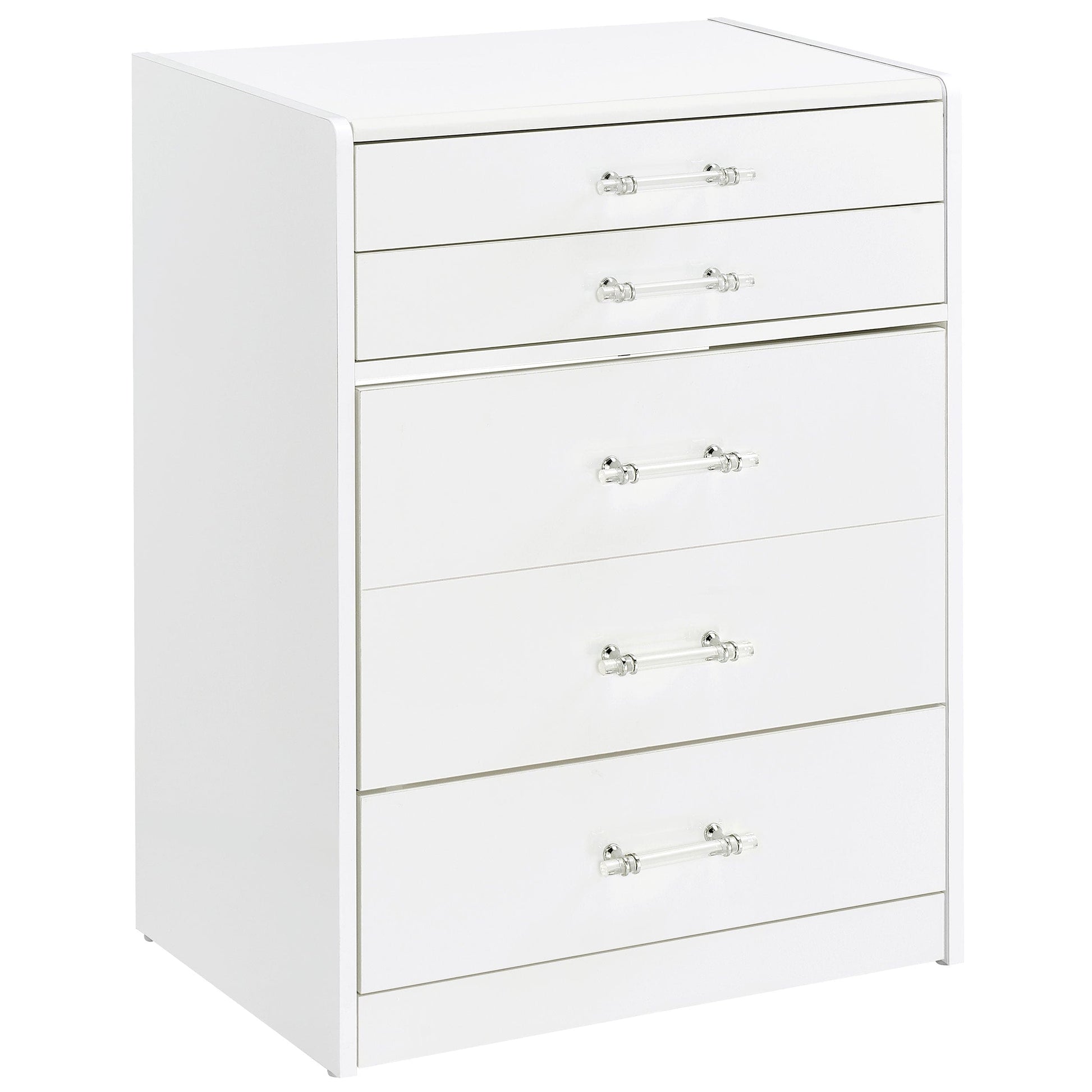 • Clear acrylic with chrome pull handles add a modern, elegant touch