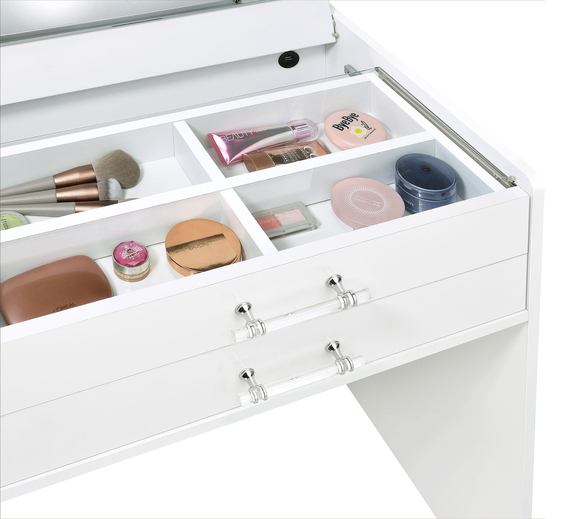 • White high gloss makeup vanity set crafted from engineered wood with eco-friendly laminate