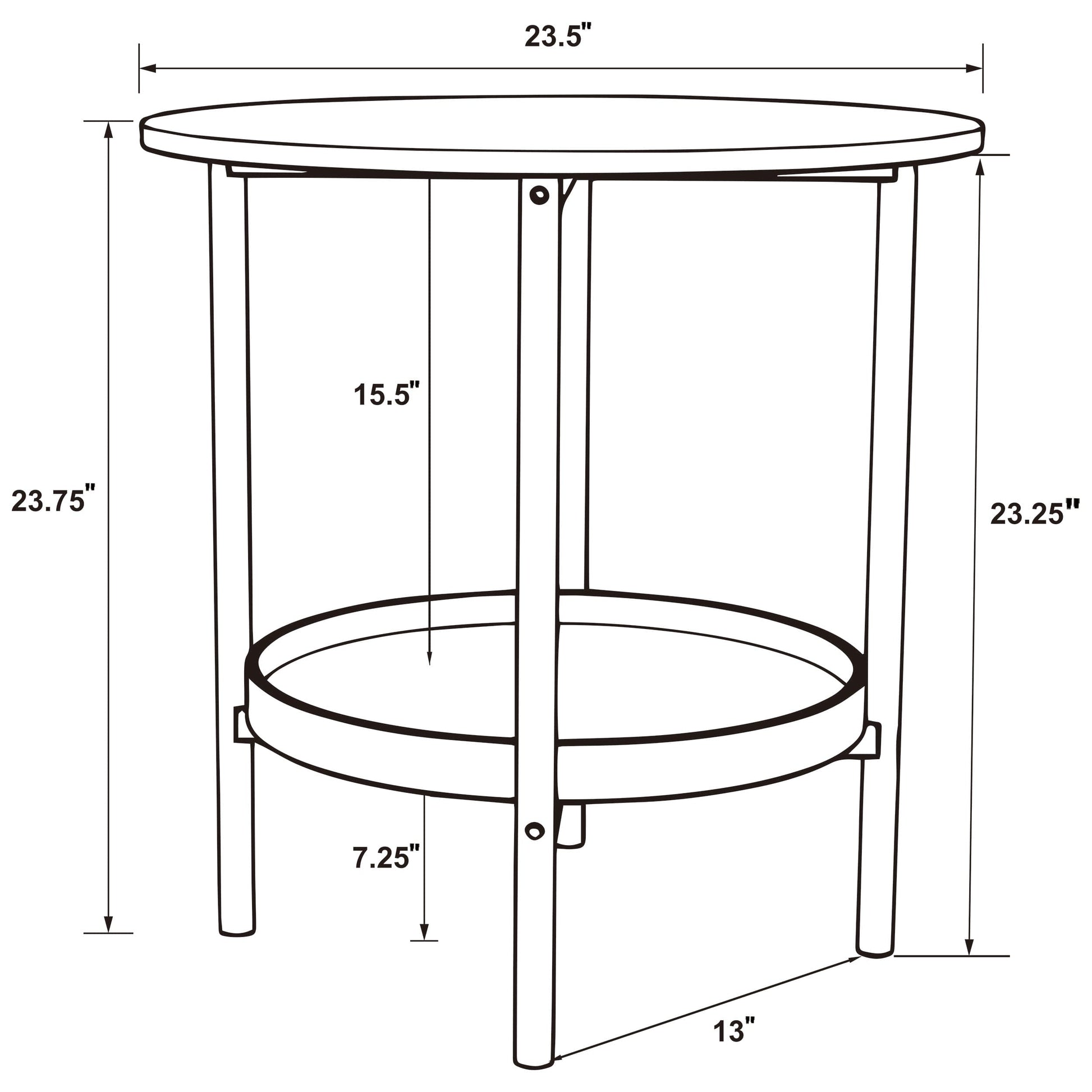 Complement your living space with the stylish, understated design of this transitional round end table. Its simple, clean lines exude farmhouse charm, with a neutral brown wood finish that brings warmth to any room. The round silhouette creates a sense of flow, while the full lower shelf, with its tray profile, offers a perfect spot for displaying your favorite decor or storing essentials. The black metal frame with tubular legs adds a crisp, classic touch to this versatile side table.