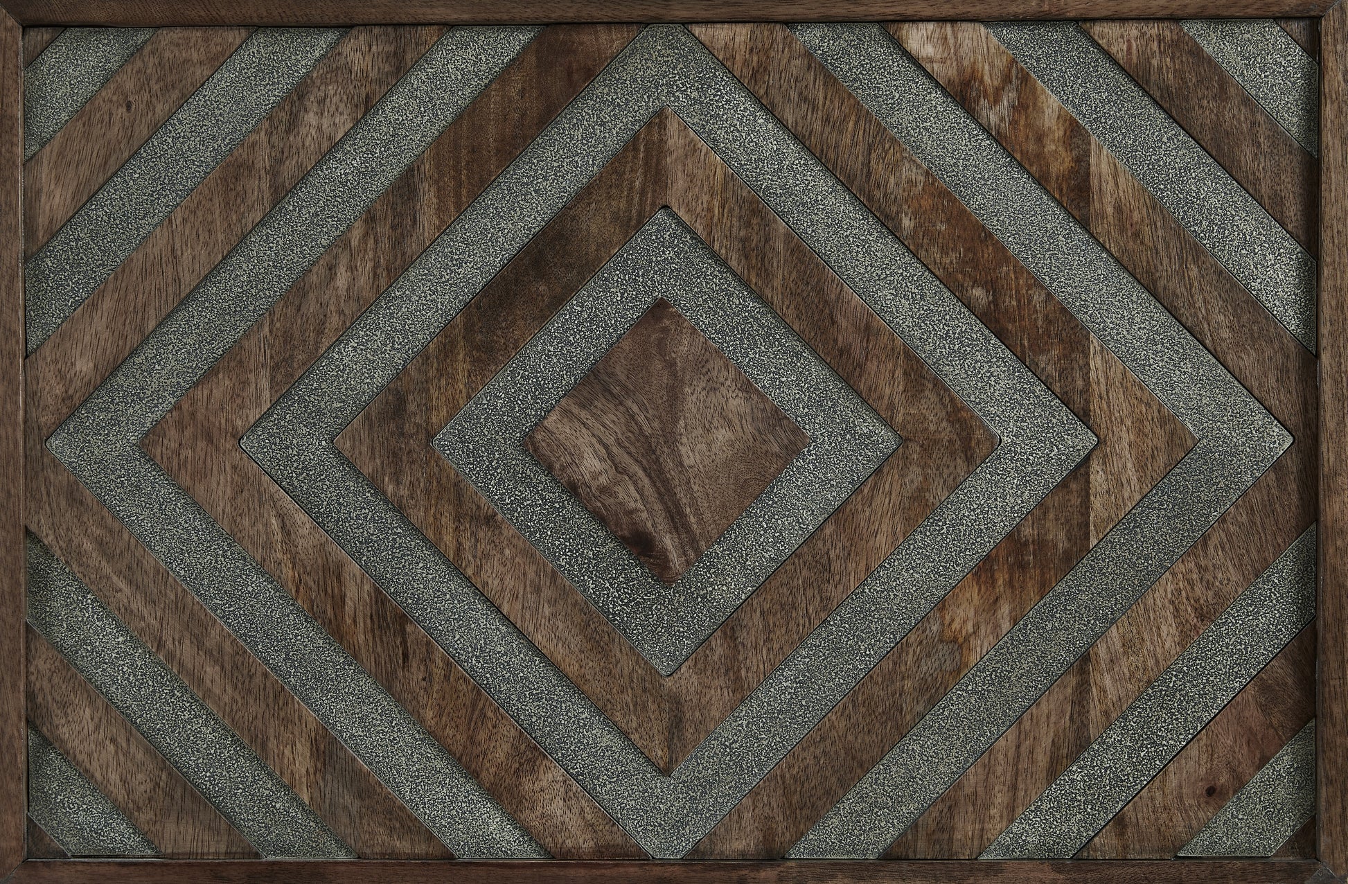 | Details | Made with mango wood and engineered wood, Warm walnut finish, Sides have diamond pattern accented with grayish gold inset textural element | |