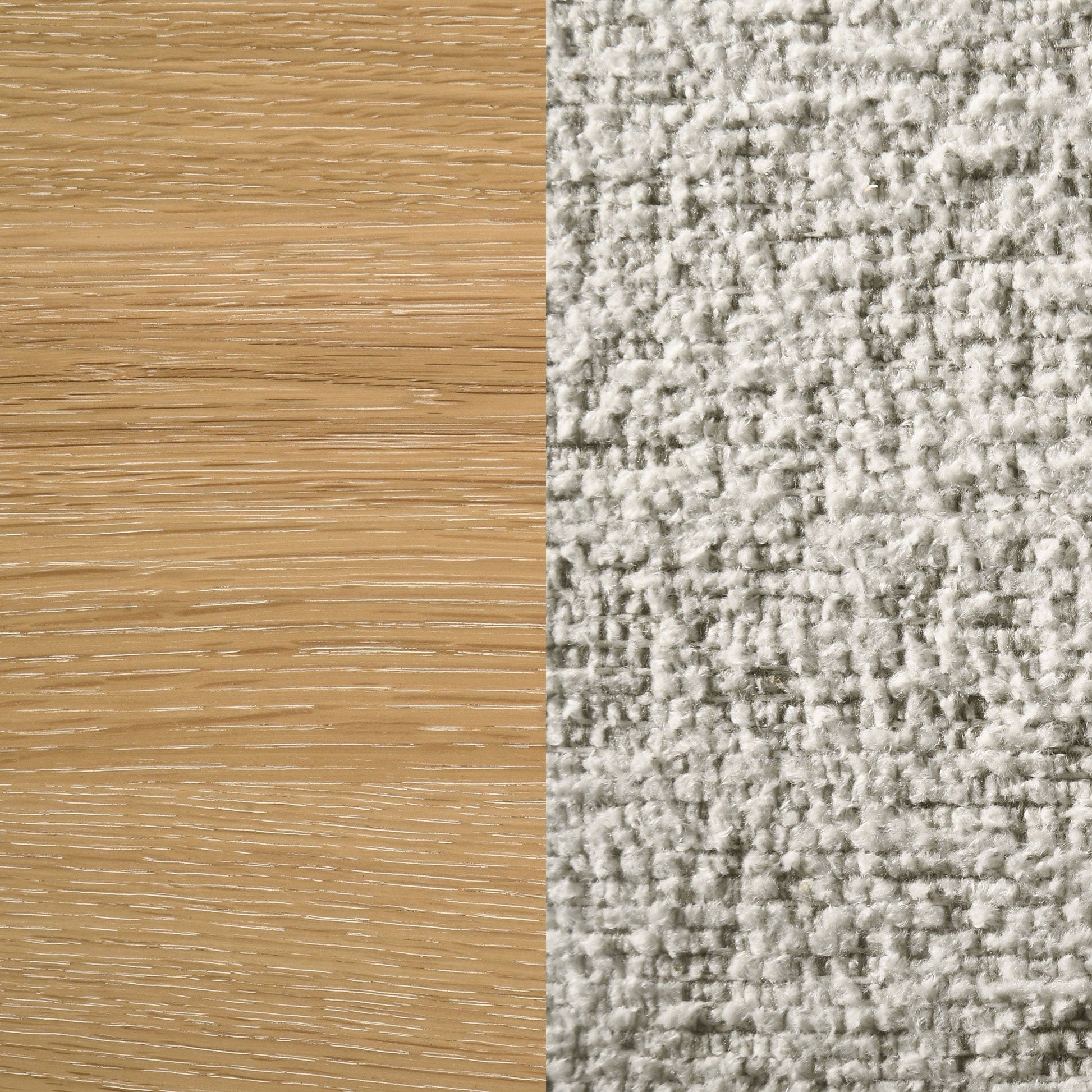 • Chairs include soft padded seats upholstered in oatmeal-colored bouclé fabric