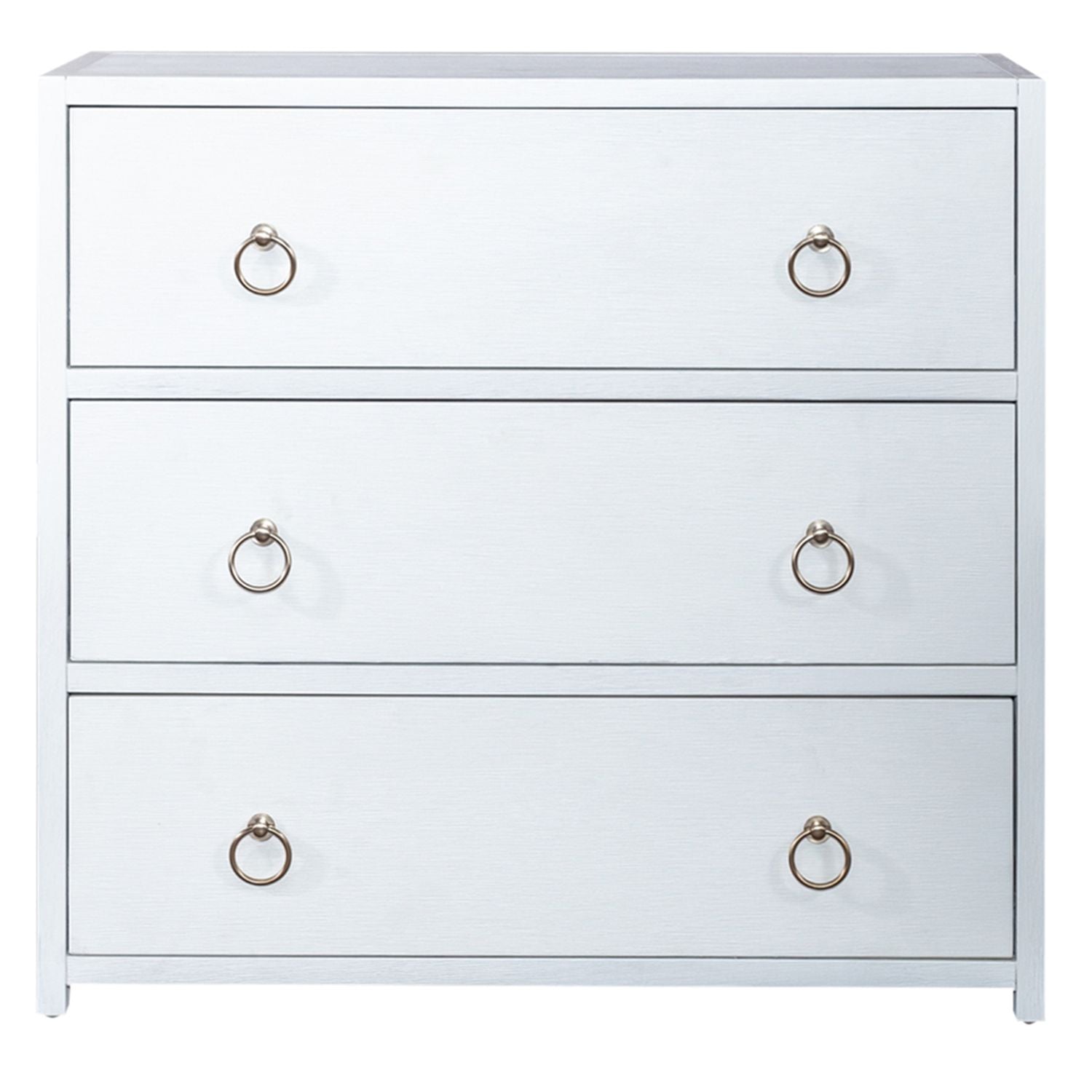 Turn your house into a home with the eclectic East End accent cabinet. Crafted of Acacia Solids and veneers, this piece features a wire brushed white finish accented with brass ring hardware. This cabinet offers three deep full extension drawers for storage and is versatile enough to work in any room, from your entry hall to your bedroom. Unique and timeless, allow the East End accent cabinet to bring inspirational design into your home.