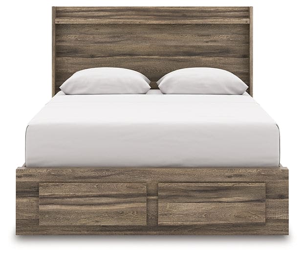 | Details | Includes panel headboard, storage footboard, roll slats and platform rails , Made with engineered wood (MDF/particleboard/plywood) and decorative laminate for the right balance of affordability and durability , Weathered brown finish over replicated oak grain with authentic touch , Decorative laminate replicates natural or man-made material surfaces with consistent color, pattern and texture , Dimming LED light under headboard shelf, Power cord included; UL listed, 2 smooth-gliding storage drawers, Drawer interiors are lined with a faux linen laminate for a clean, finished look, Bed does not require additional foundation/box spring; accommodates most zero clearance adjustable bases with the addition of a bunkie board , Mattress available, sold separately, Assembly required | |
